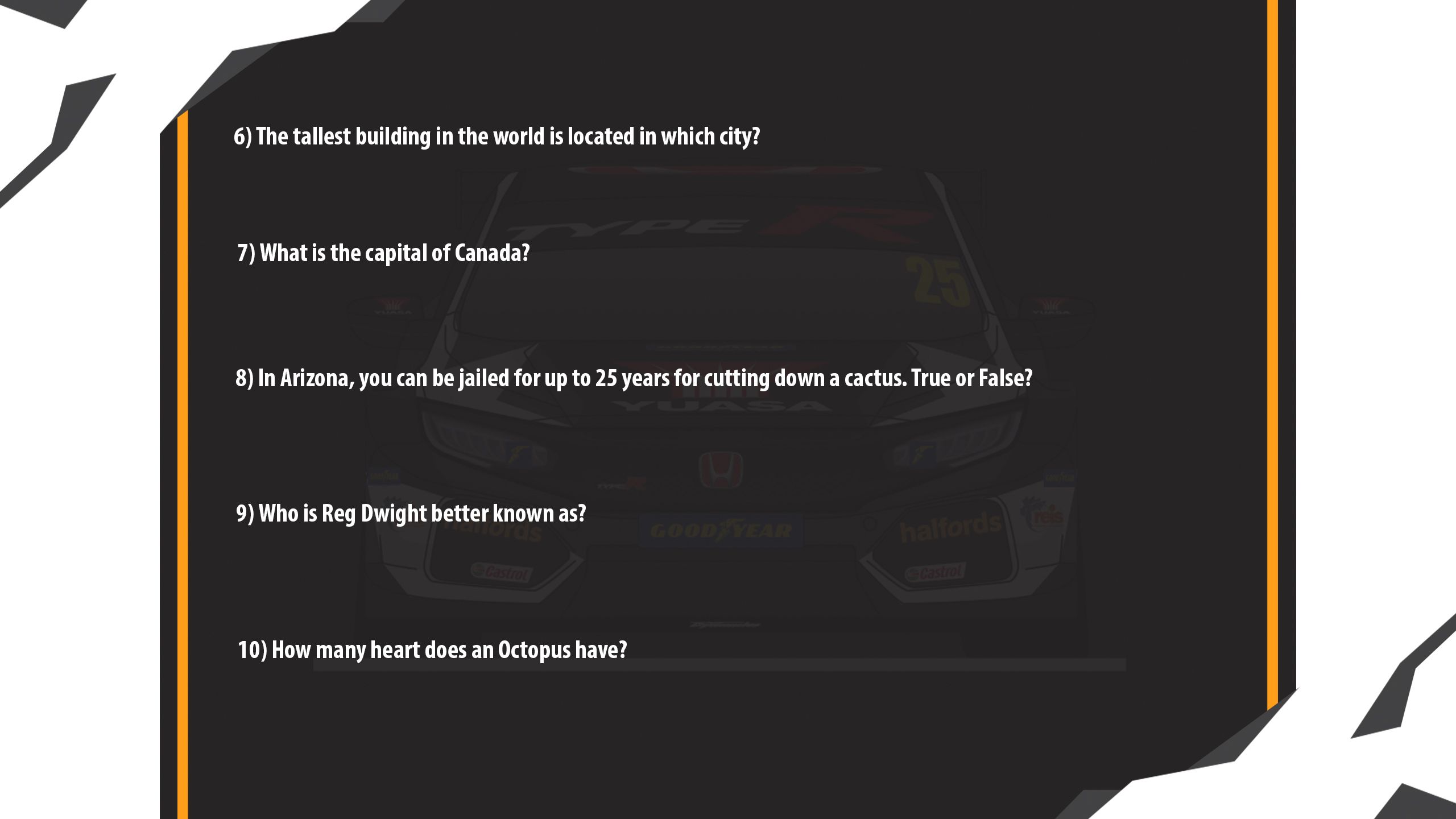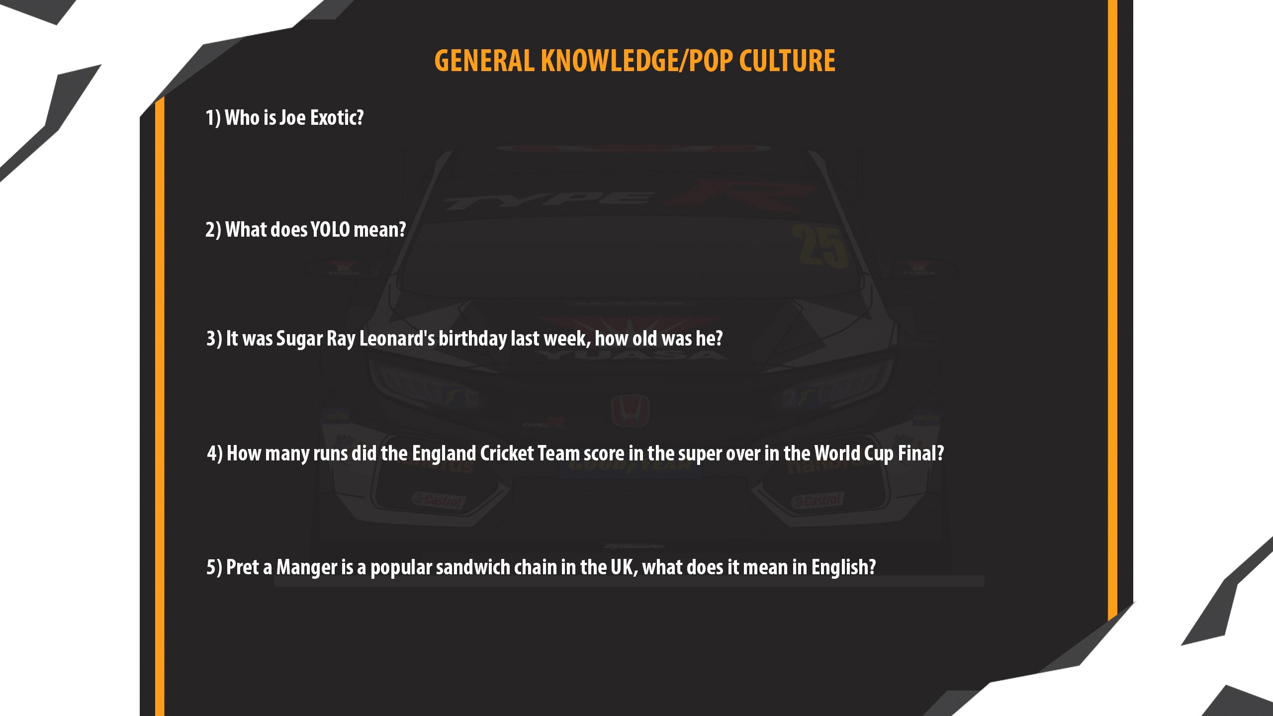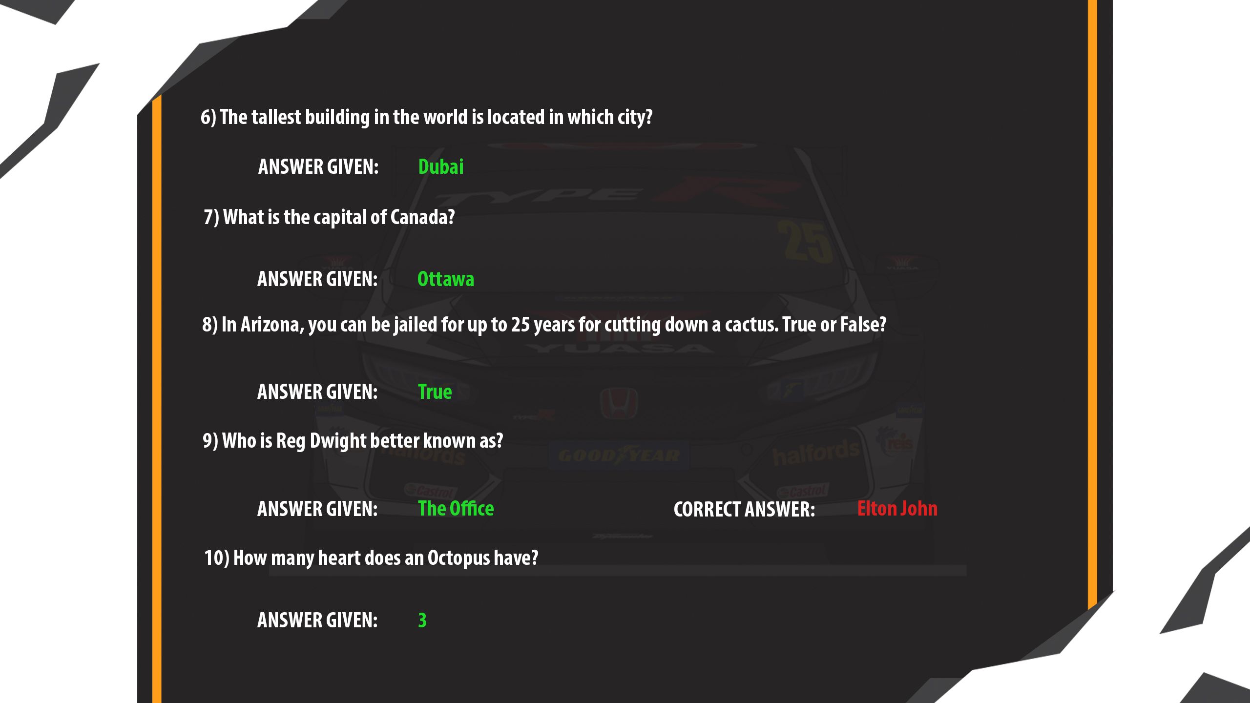 Check below for the answers the lads gave, alongside the correct answer when the incorrect answer was (often) given. With a strong degree of certainty, we can confirm that neither of our drivers will be quitting their day jobs.