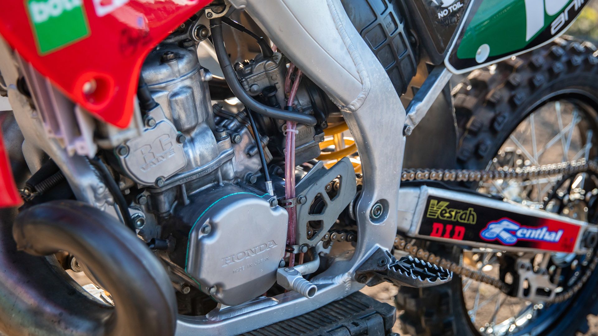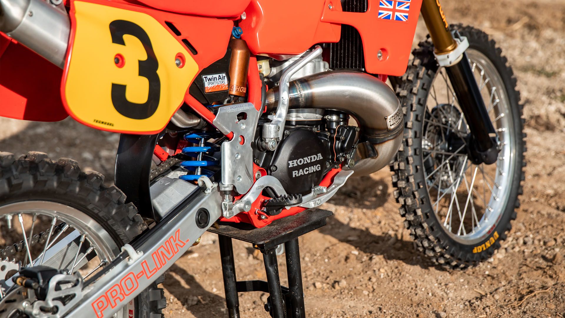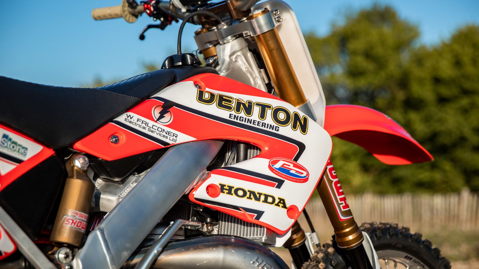 Dean’s 1993 Mugen CR125 varies slightly to a stock model, with a few HRC bits added over the years.