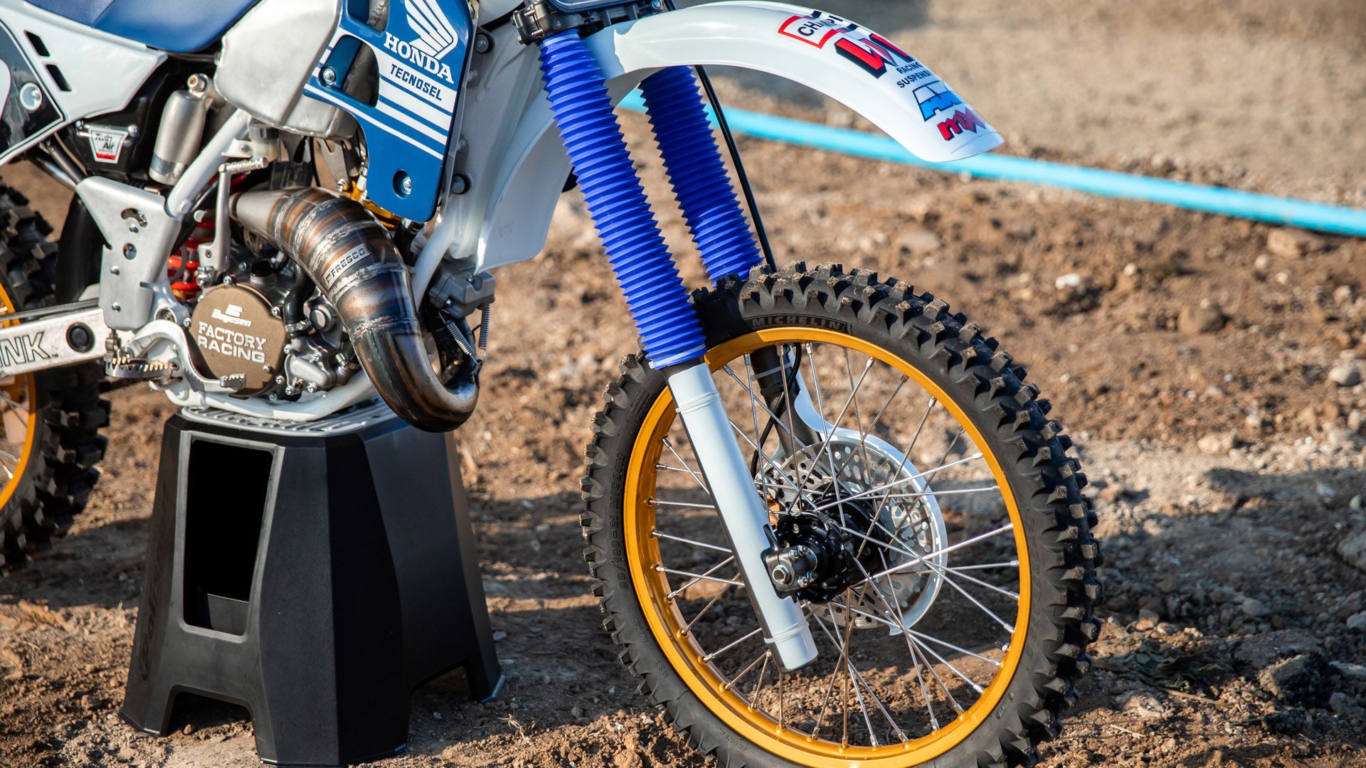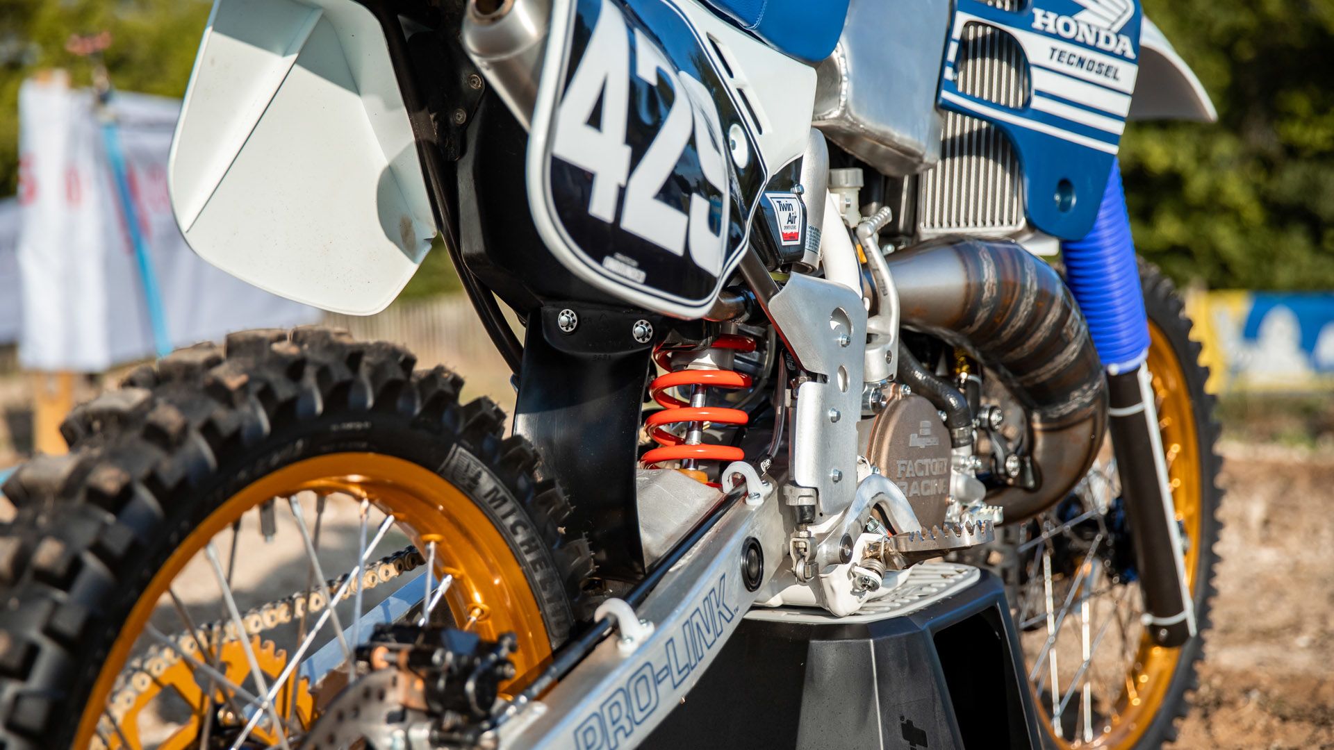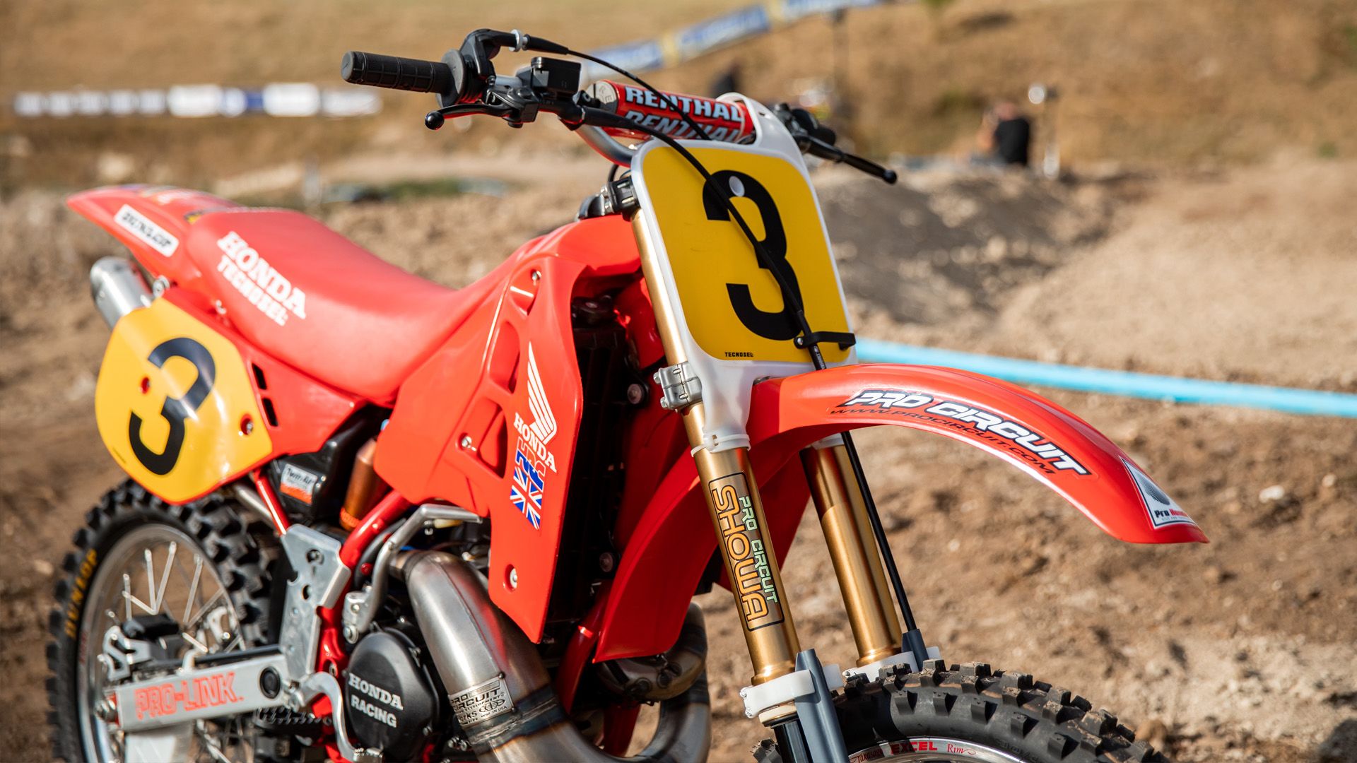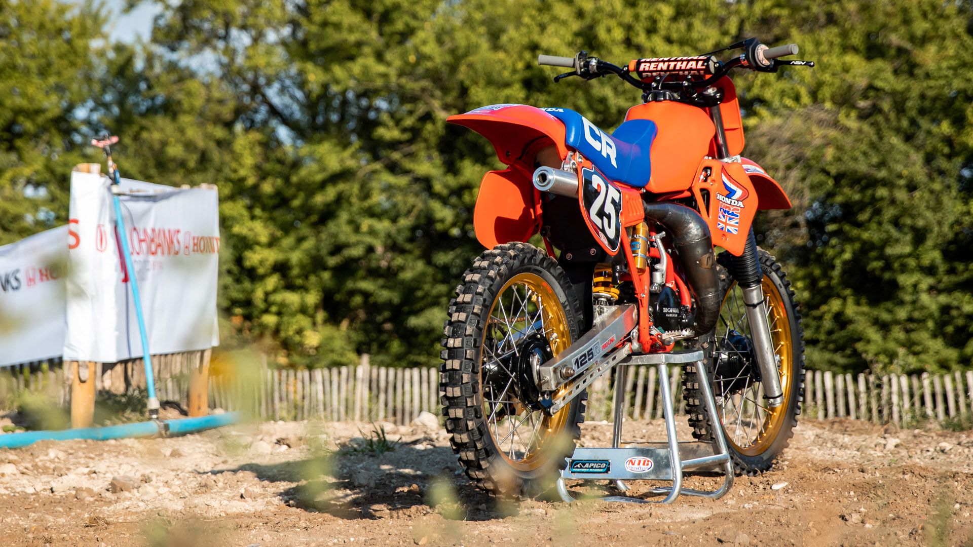 Dean’s 1993 Mugen CR125 varies slightly to a stock model, with a few HRC bits added over the years.