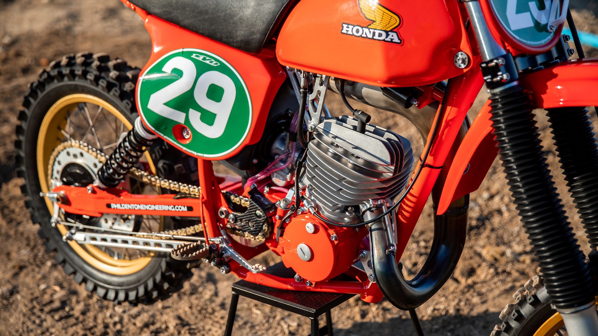 Adrian races in the 125 Championship with his 1983 CR125. Growing up watching Thorpie, he’s pretty much been a riding red ever since, and even rides a 2021 CRF450 in the veterans.
