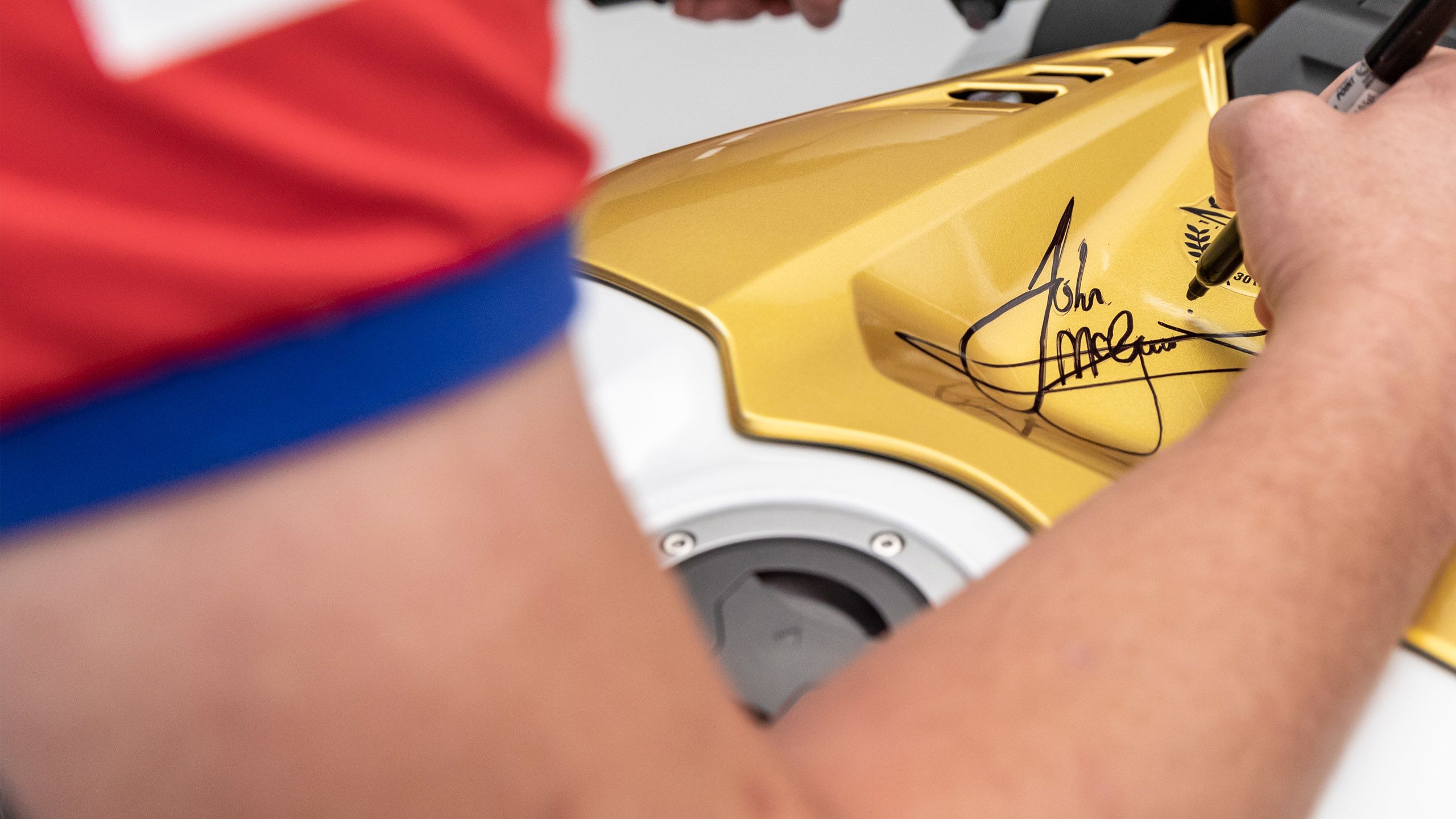 With a maximum of 30 bikes to be sold worldwide and an OTR price of £30,000, the John McGuinness 100th TT Start Fireblade SP features a specially commissioned replica paint scheme, an airbox cover autographed by the 23-time race winner himself, and an individually numbered plaque on the headstock.