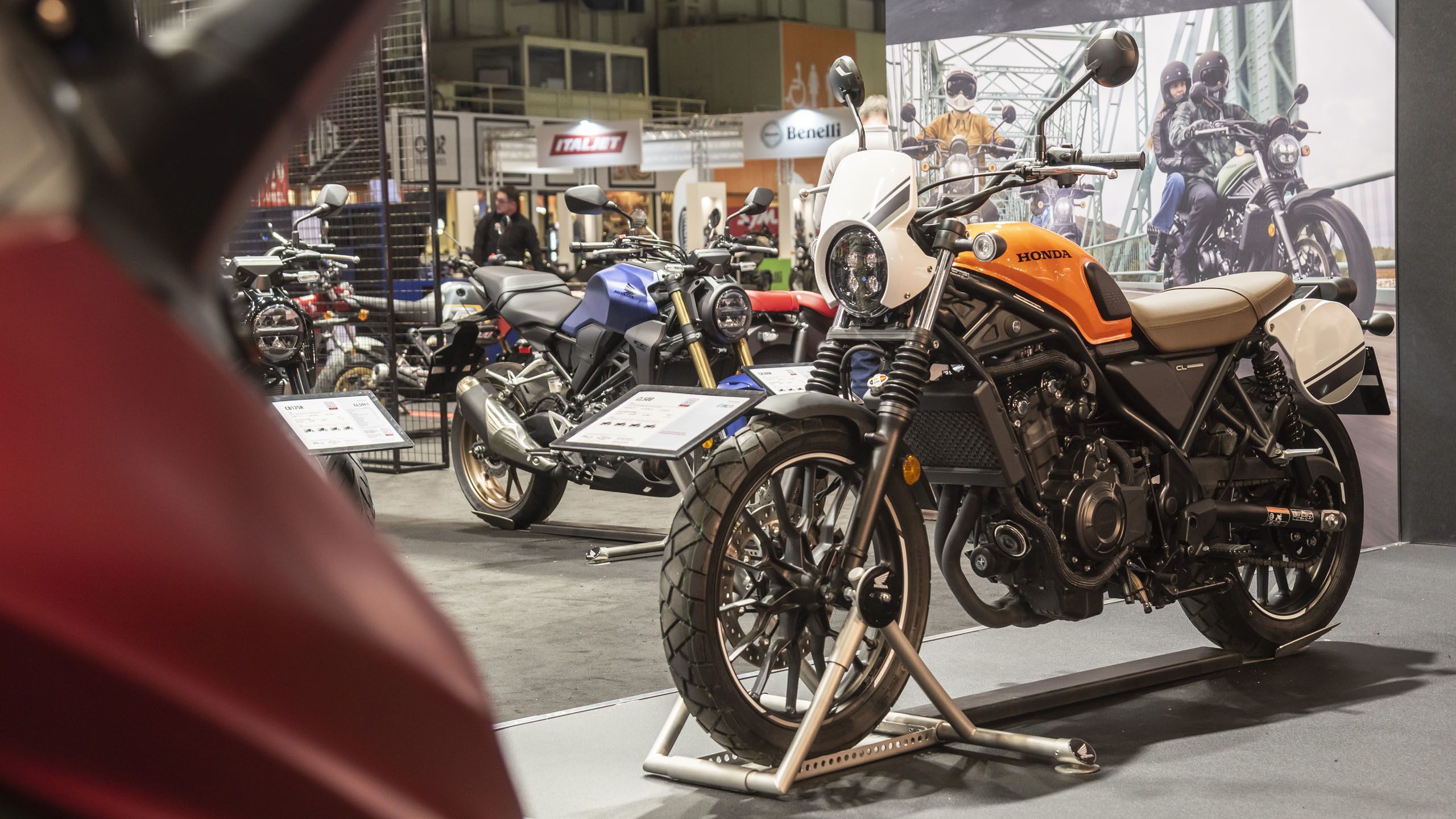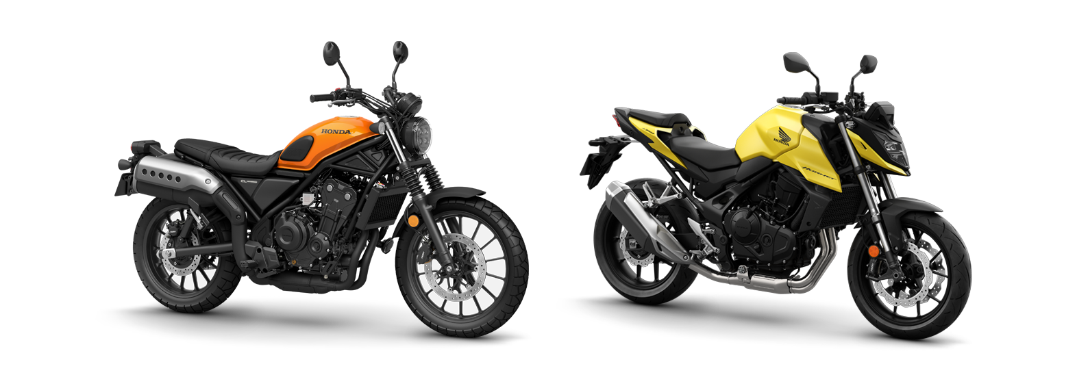 First under the spotlight is the retro-inspired CL500. A brand-new take on a vintage classic. Then, flying high and close on its heels is the incredible future-class leader, Honda's iconic 750 Hornet.