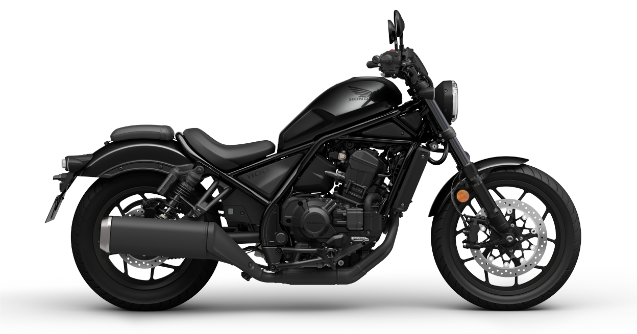 The panniers and half fairing are colour matched to the 1100T Rebel's blacked-out bodywork to provide the perfect package.