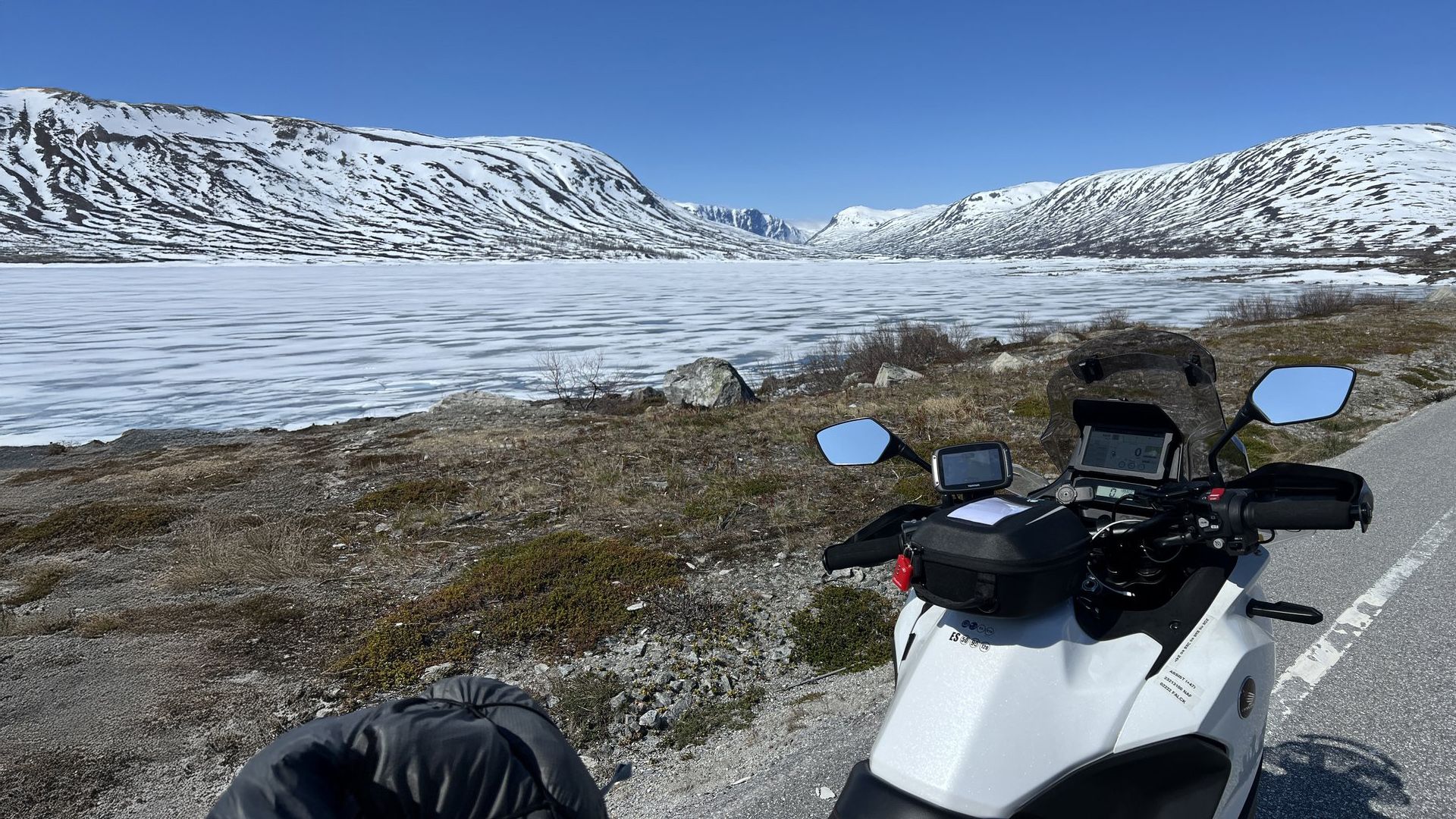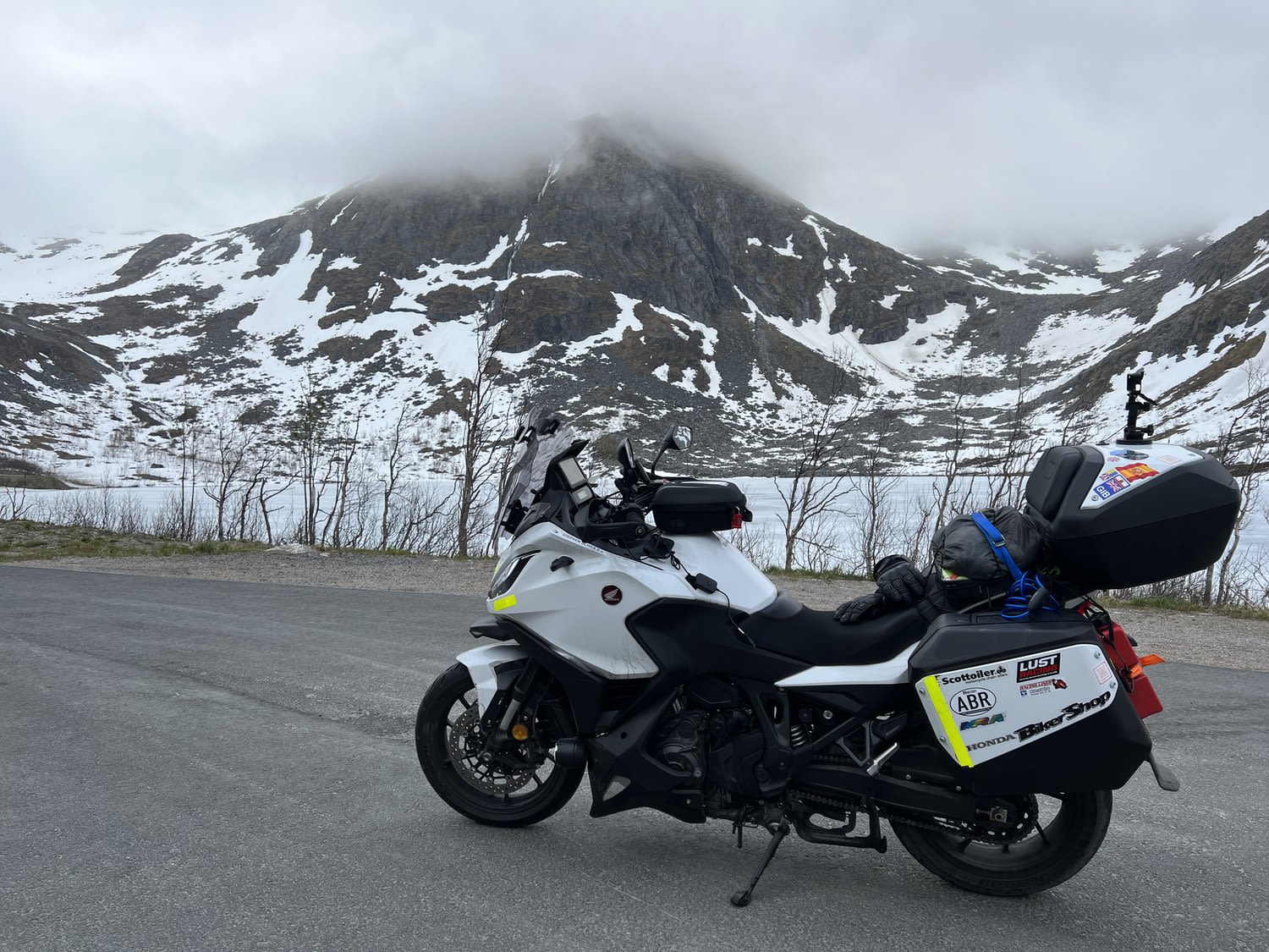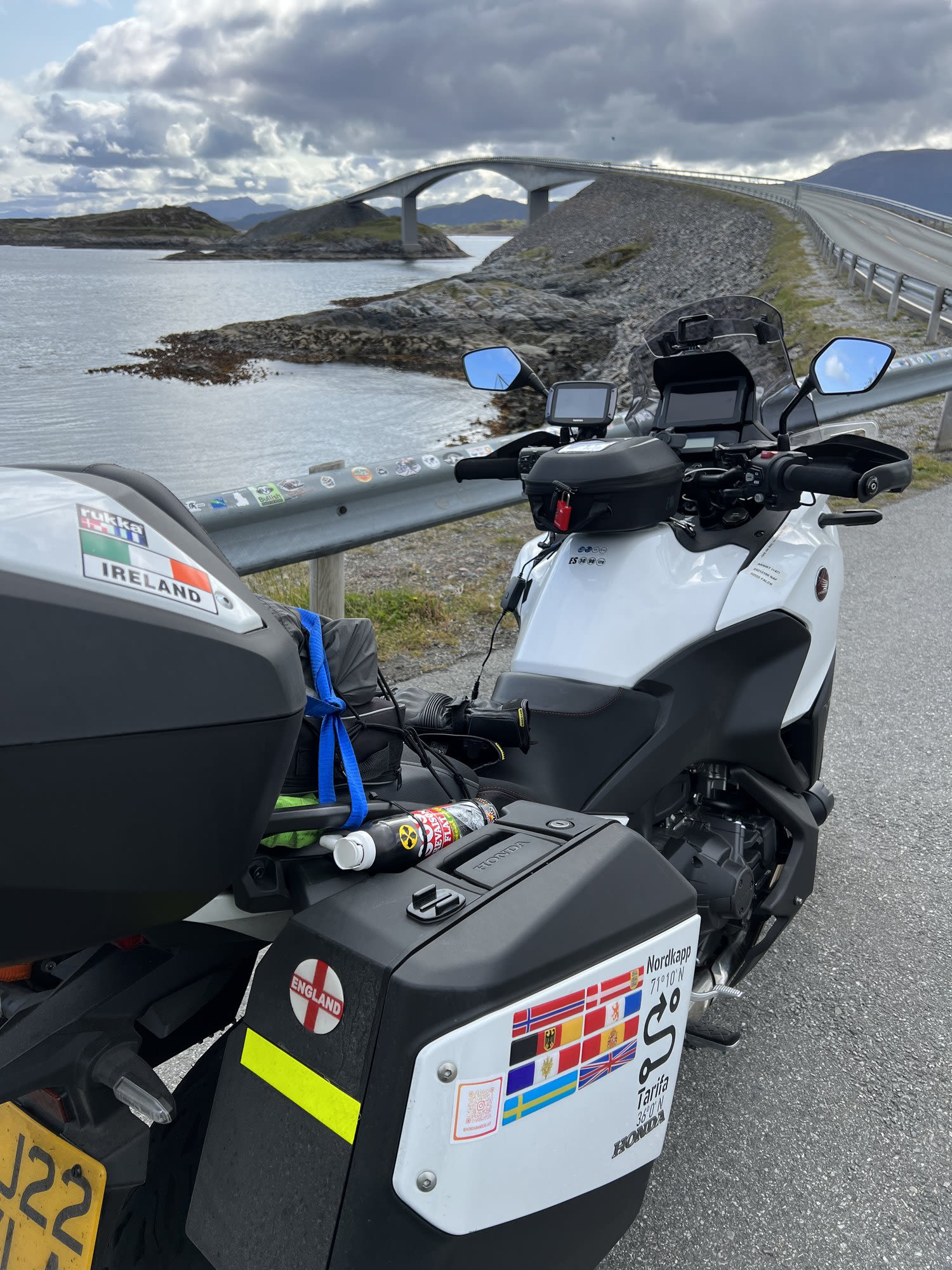 My Honda NT1100 DCT was the perfect companion for devouring the trip’s 7,015miles. Cruise control was a crucial aid in sticking to Norway's speed limits. The spacious panniers and top box swallowed all my gear with room to spare. The DCT meant I could concentrate on the road and scenery. It makes for relaxed riding. The parking brake is a necessary quirk of the DCT, as you can't leave it in gear. Unfortunately, I learned this the hard way, riding a short distance with it engaged after a ferry disembarkation. The result? Worn pads and a detour to a Honda dealer in Gothenburg. I carried a jerry can of fuel for the Far North. Never used it. I’ve just upgraded it to the 2025 DCT ES model for my next adventures.
