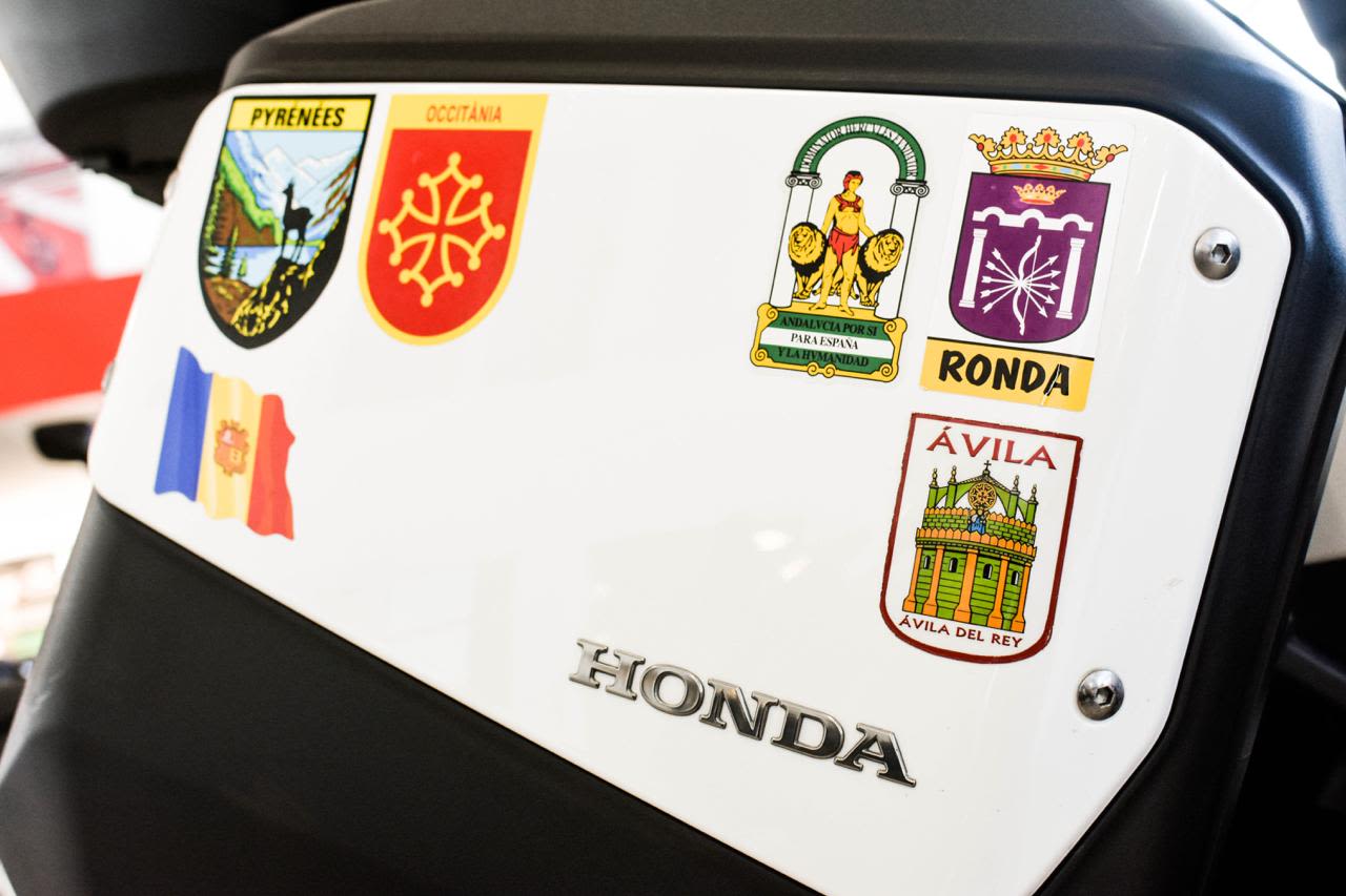 Smooth progress ended near Marchena. A slick roundabout sent bike and me crashing, resulting in a battered Honda, broken ribs, and a roundabout phobia. A local helped; the bike was rideable, but pristine no more. Rib pain became a constant reminder.