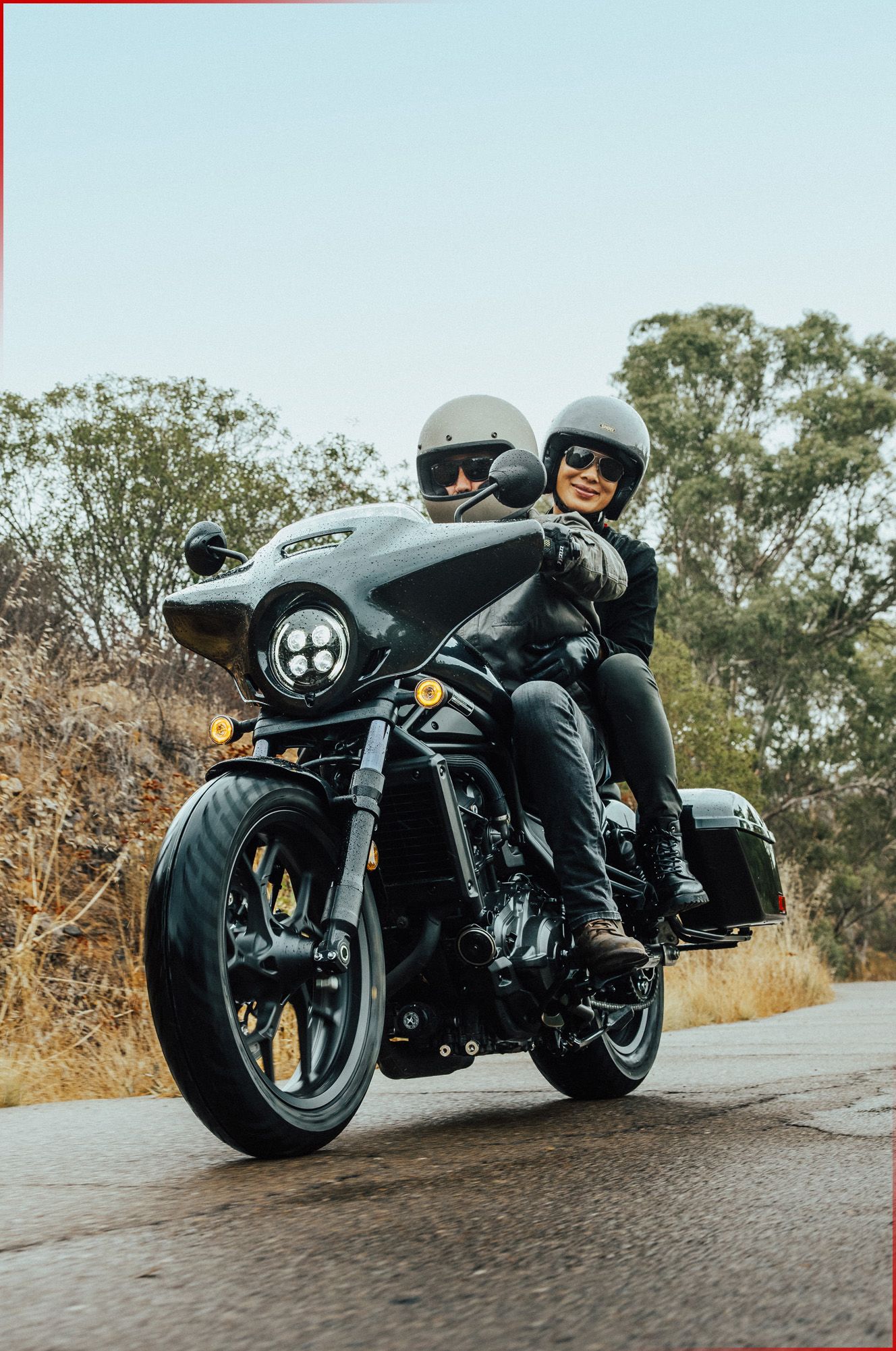 With its individual looks – as well as easy, nimble handling and fun engine response – riders, many new to two wheels, have enjoyed and customised the Rebel CMX500 the world over. But now’s the moment for more. The family resemblance is instant, but the Rebel CMX1100 has a great deal going on. The torquey, characterful parallel twin-cylinder engine features Throttle By Wire management, 4 riding modes, Honda Selectable Torque Control and Wheelie Control. Cruise control is standard and our unique, six-speed Dual Clutch Transmission an option. And this cool cruiser is also made for corners – 43mm cartridge-style front forks, piggyback rear shocks and a radial-mount four-piston front brake caliper see to that.