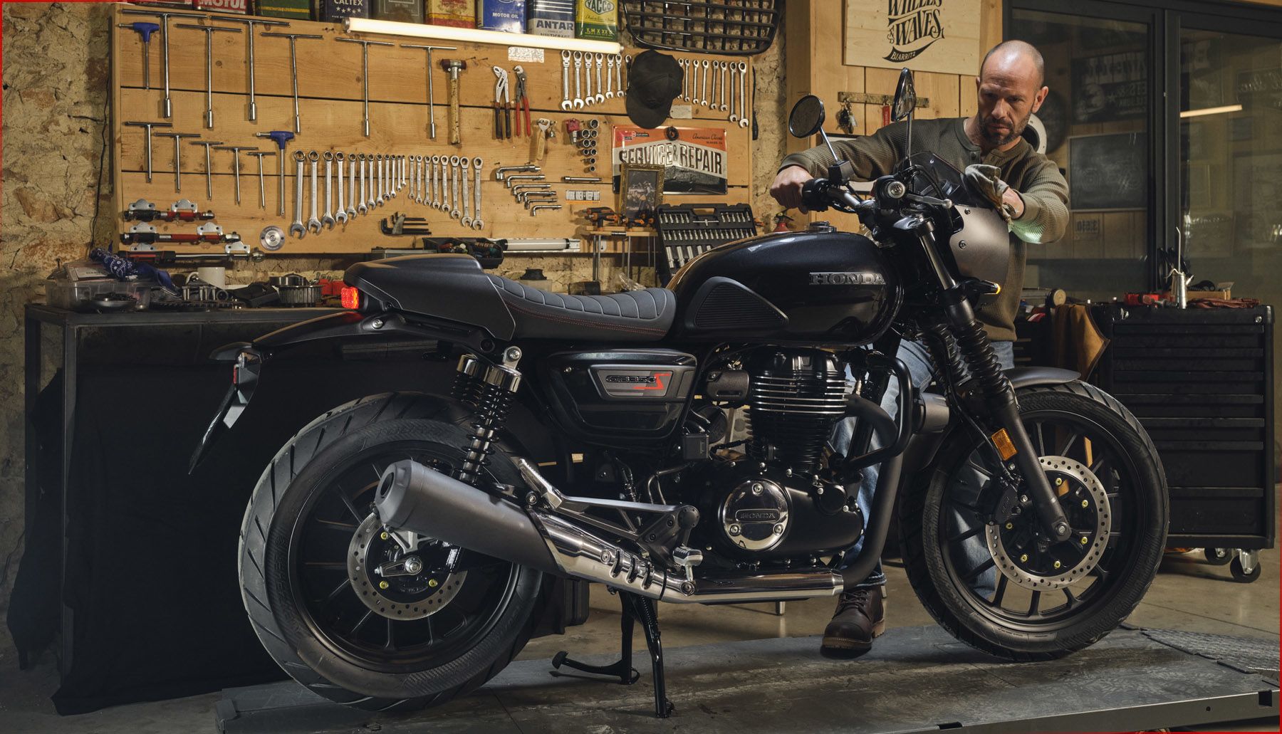 This motorcycle is deliberately unfussy but with an evocative style gathered over generations of building motorcycles for riders to ride. You are at its centre. The GB350S clothes its tubular steel semi-double cradle frame with minimal – but beautifully expressive – steel fuel tank and side panels. Rubber fork gaiters are both classic, and practical. Blackout detailing highlights the polished engine cooling fins, and everywhere you look the proportions are just right. And, of course, with a range of Honda Genuine Accessories to choose from, this is just the start. Where you take your GB350S is up to you.