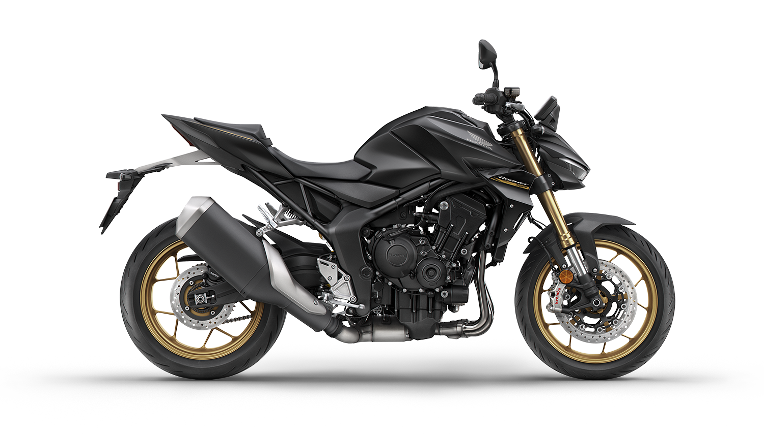 Our Hornet family is complete, and the boss of the hive is here packing a sting in its tail. The new CB1000 Hornet loads a four-cylinder engine built to shred tarmac with naked class-leading punch. Throttle By Wire delivers precise control while the chassis arms with adjustable Showa 41mm SFF-BP USD forks and Pro-Link rear shock. Pure, bare-knuckle street fighting aggression is led by sharp twin LED projectors; a full-colour 5-inch TFT screen and Honda RoadSync connectivity brings the smarts. Ready for full attack?
