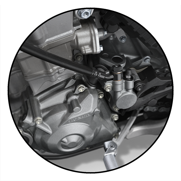 The 449.7cc four-valve Unicam engine has a significant increase (up to 0.6kW) in peak power above 5000rp accompanied by a stronger low-rpm torque feel. The decompression system is also new to increase stall-resistance and the biggest change is to the twin exhaust ports. Like the CBR1000RR-R Fireblade, their exit is oval rather than round for improved efficiency.