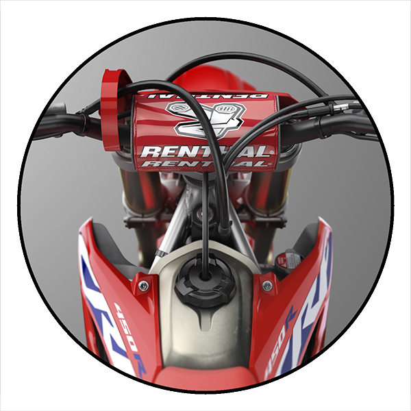 Lightweight Renthal Fatbars® flex for optimal comfort and the top yoke features two handlebar-holder locations for moving the handlebar rearward and forward by 26mm. When the holder is turned 180°, the handlebar can be moved an additional 10mm from the base position, resulting in four unique riding positions. Even the wiring saves 100g.