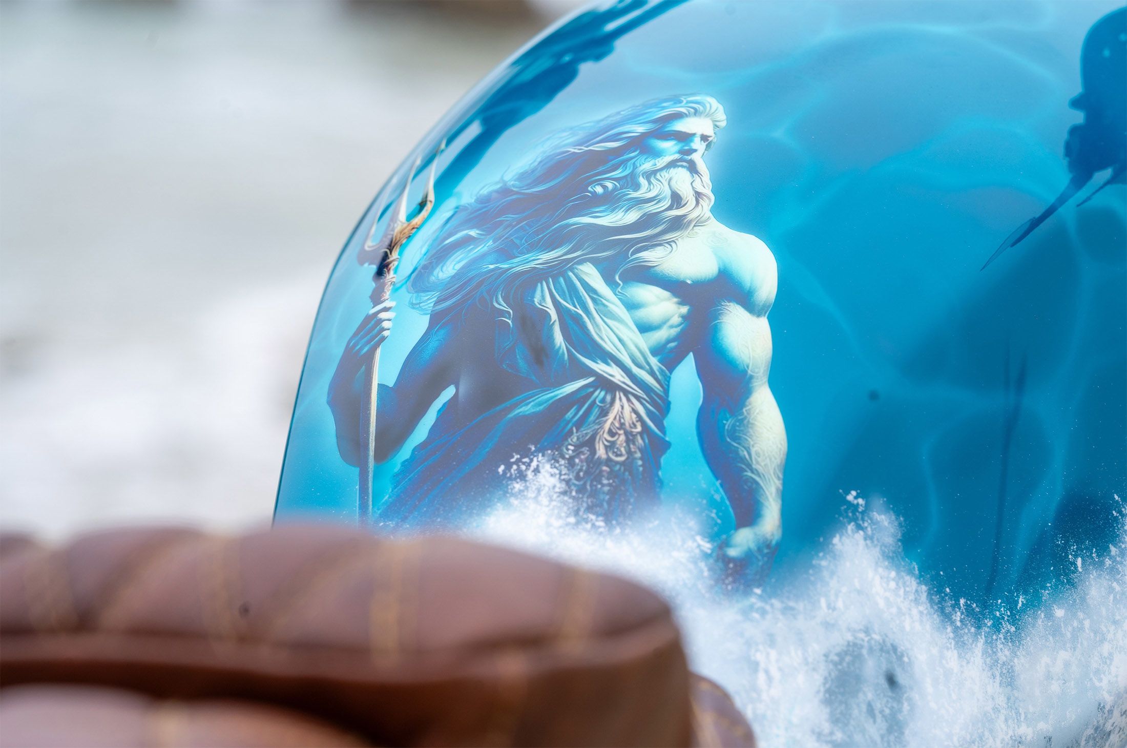 The Poseidon Project was created by the team at south London’s Doble Motorcycles as an homage to the beauty and power of the ocean. It features a custom painted frame and components with oceanic blues and greens, airbrushed fuel tank and side panels, plus custom seat finished in brown leather. It has been inspired by the team's strong interest in marine conservation.