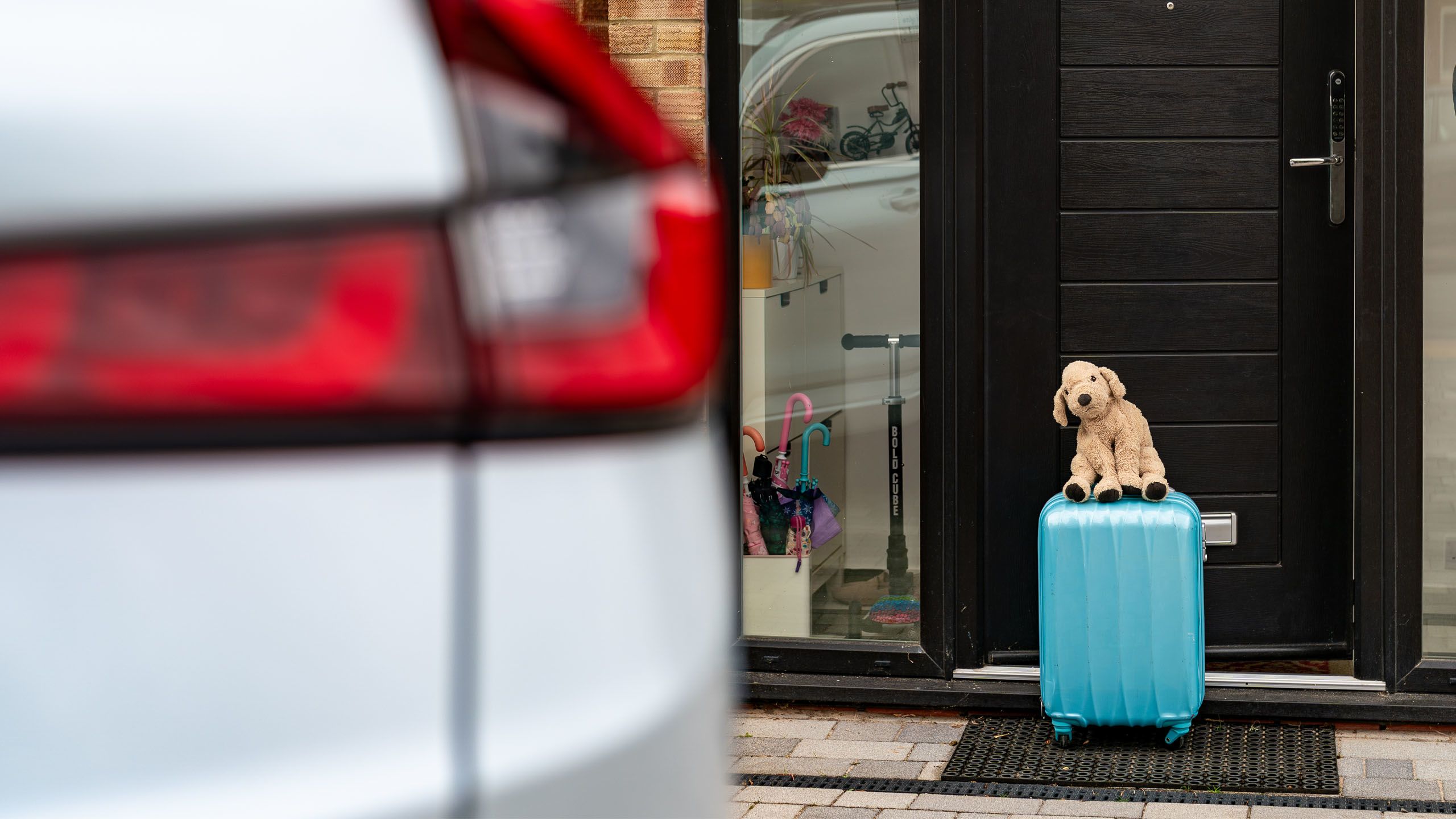 Mum and Dad carefully loaded the final items into the spacious trunk - a small suitcase packed with essentials and Bubbles, a beloved teddy bear that would provide comfort on the little one's first night away from home.