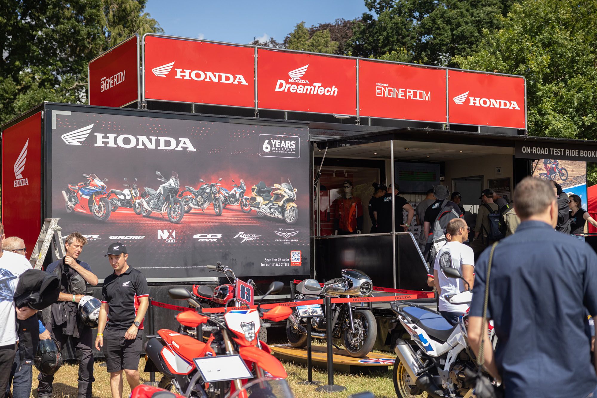 A significant number of visitors chose to head to the expert Honda Off-Road Centre team (https://www.davethorpehonda.com), who provided access to almost 30 bikes, from the new CRF300L to the latest Africa Twin, available with or without DCT. For many, this presented a unique opportunity to try DCT off-road for the first time, under the careful guidance of seasoned Honda instructors on the 12km manufacturer's dedicated off-road route.