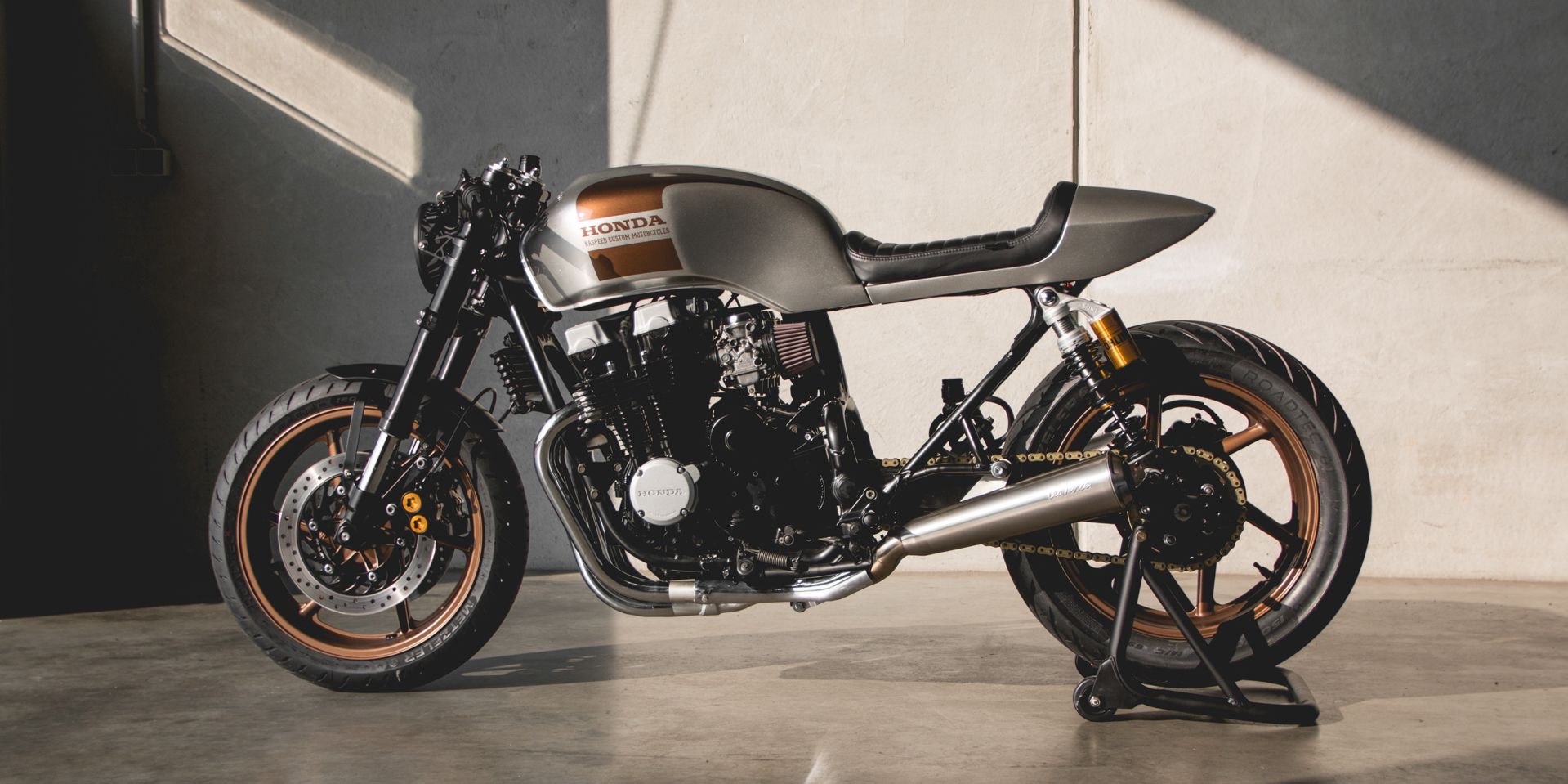 - The CB750 created by the father and son team at Kaspeed Customs.