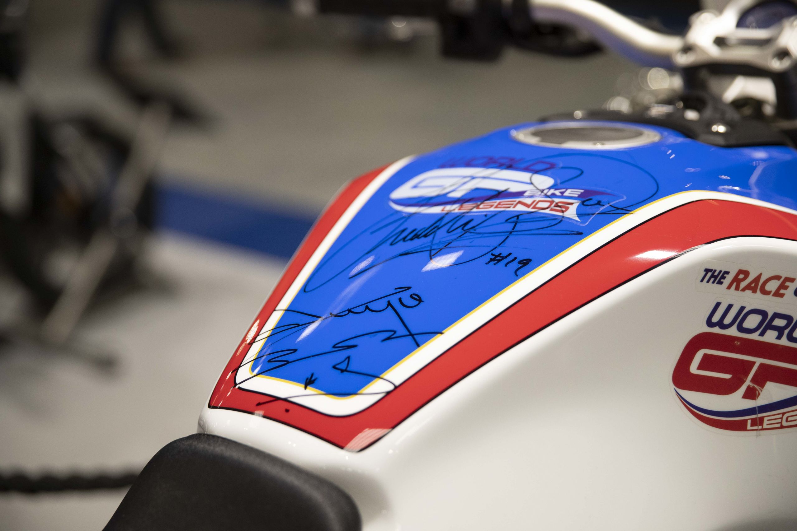 Too all intents and purposes it was almost the same as a standard CB1000R, but this one had been finished in a new white colour scheme and was fitted with Akrapovic exhaust. What made this one extra special, though, was that it was signed by former 500cc world champions Freddie Spencer and Wayne Gardener.