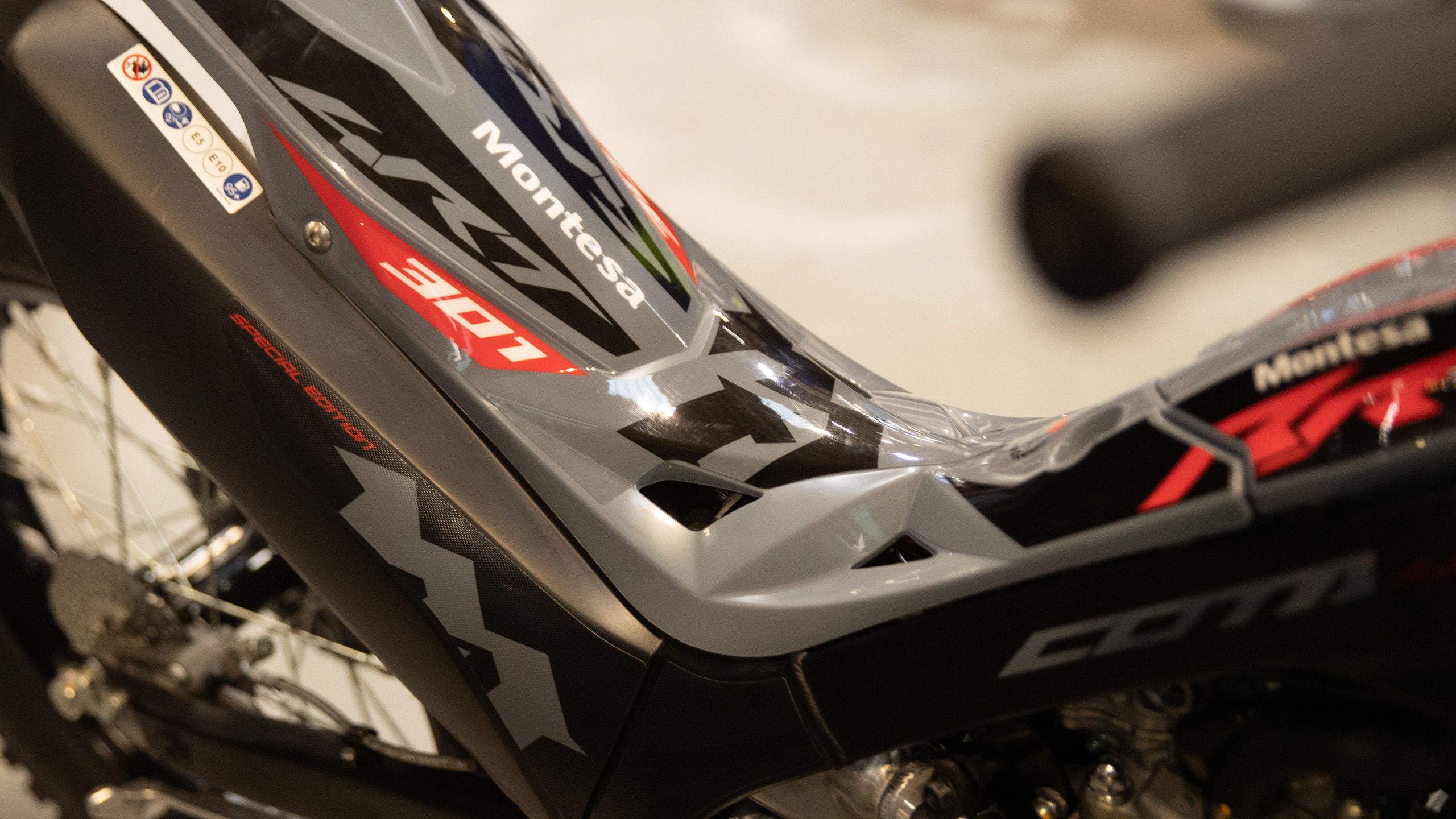 Built at the Montesa Honda factory in Santa Perpetua de Mogoda (Barcelona), the 301RR has a single-cylinder, 4-stroke, 4-valve engine that is now a 298cc unit, instead of the 288cc of its predecessor. It's a modest power increase, but it corresponds to what is now the maximum allowed capacity in Trial2.