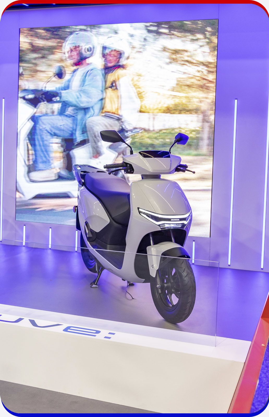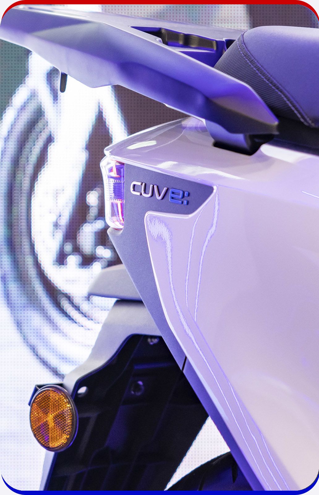The CUV e: benefits from premium high-visibility LED lights and indicators plus a sturdy passenger grab rail whose design follows the seat’s contours.