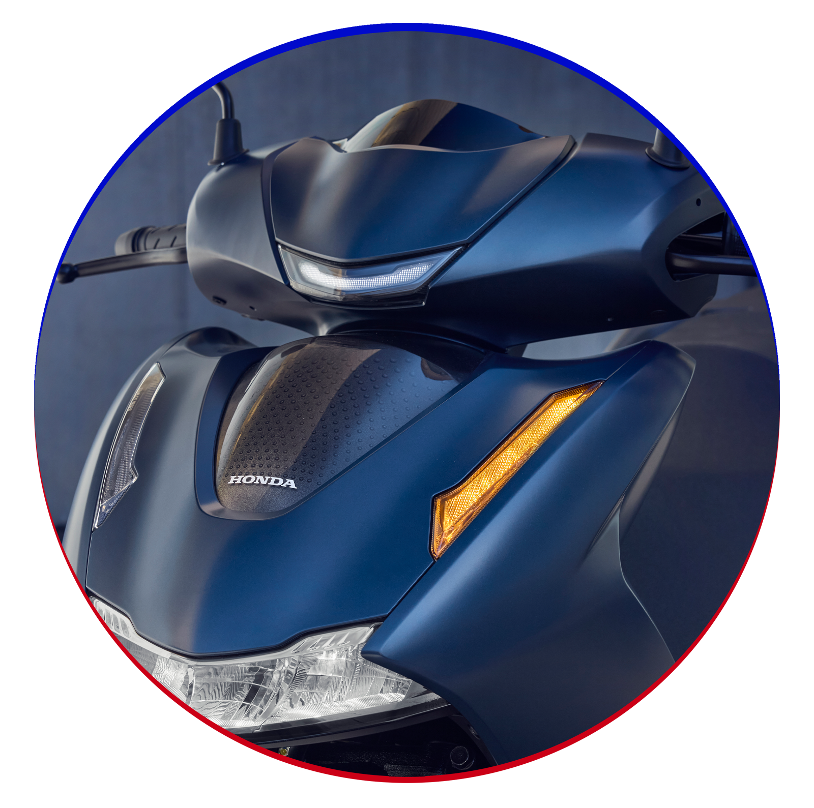 The Honda SH350i has always had a reputation for being a sharp handler due in part to its lightweight steel tube underbone frame. The well-proven design gives reassuring high-speed stability and the 27.5-degree rake enables nimble city handling.