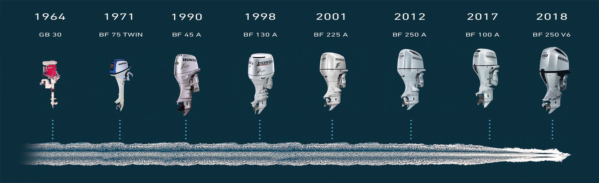 Honda Marine have been producing outboard engines for over 55 years. Sochicro Honda was determined to ensure that ‘watercraft should not pollute the waters they ply’ and as a result Honda created an advanced 4 stroke model range in the early 1960’s, the cleanest on the market.