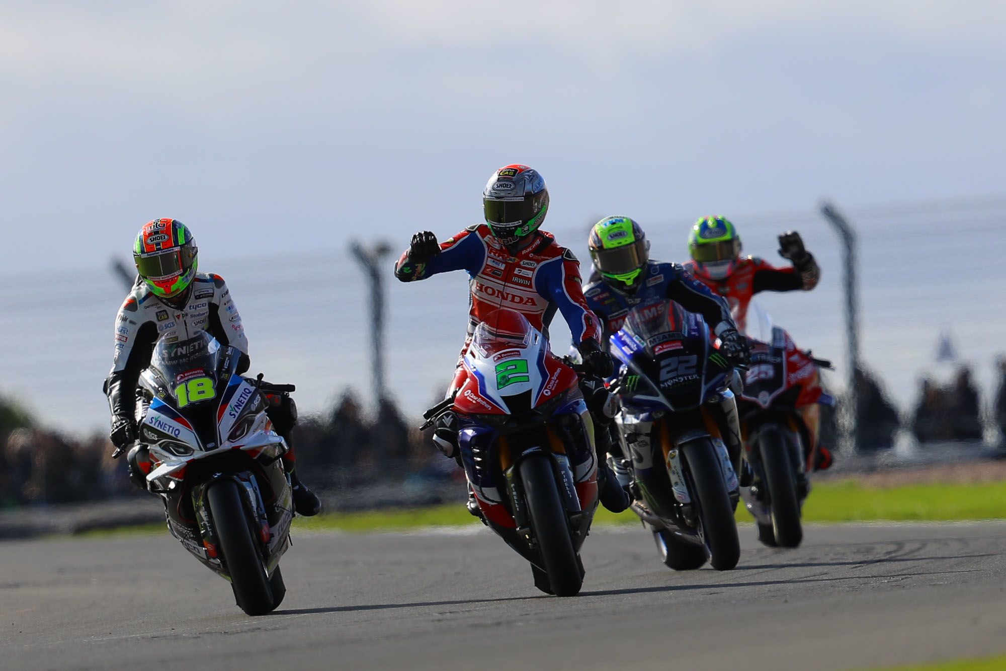Tom Neave brought his Honda Racing UK CBR1000RR-R Fireblade SP machine home in third place, after a thrilling battle in today's Pirelli National Superstock race. Starting from 12th on the grid, Tom had his work cut out across the 14 laps in order to keep his championship hopes alive, but getting his head down and riding a smart race he made light work of cutting through the pack to get into the group battling for fourth.