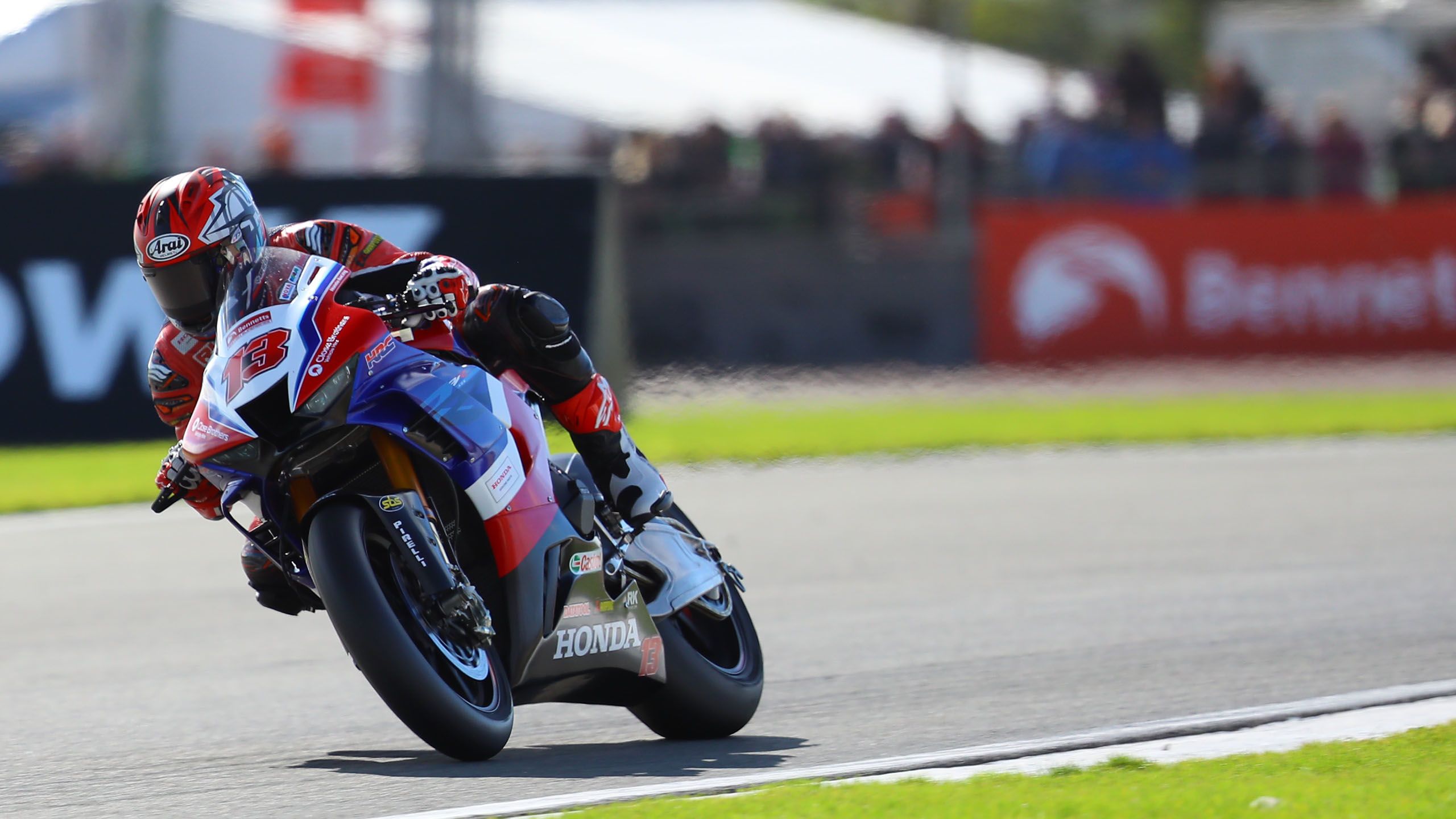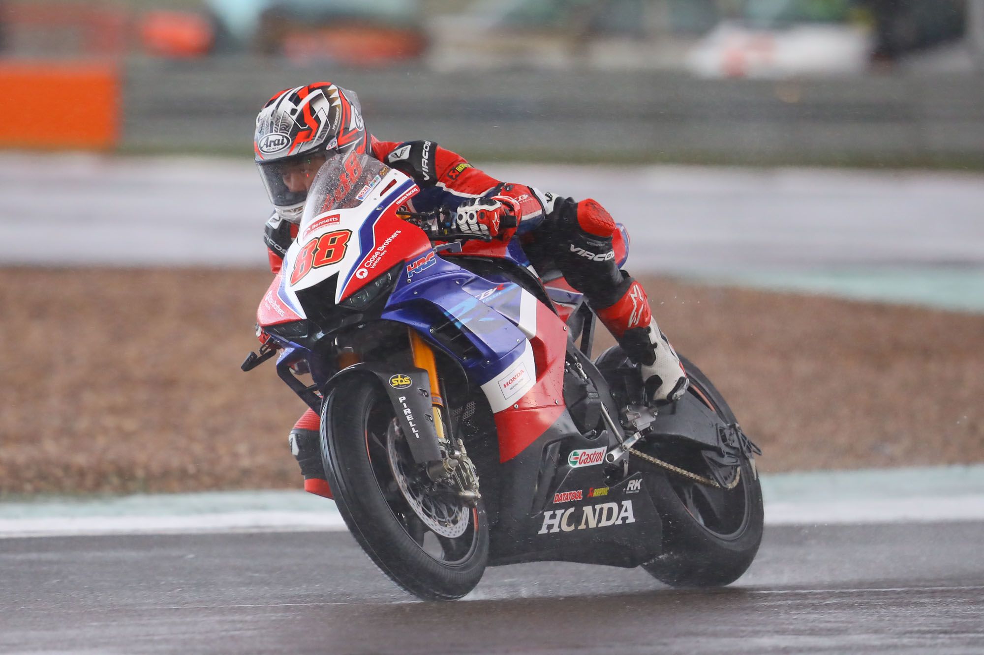 The Honda Racing UK team have experienced a mixed day at Donington Park for the tenth round of the Bennetts British Superbike Championship, with wet weather conditions hampering progress. Pre-empting a poor and potentially disruptive weather forecast, the schedule for today was altered bringing both the opening races for Superbike and the Pirelli National Superstock Championship forward by a few hours.