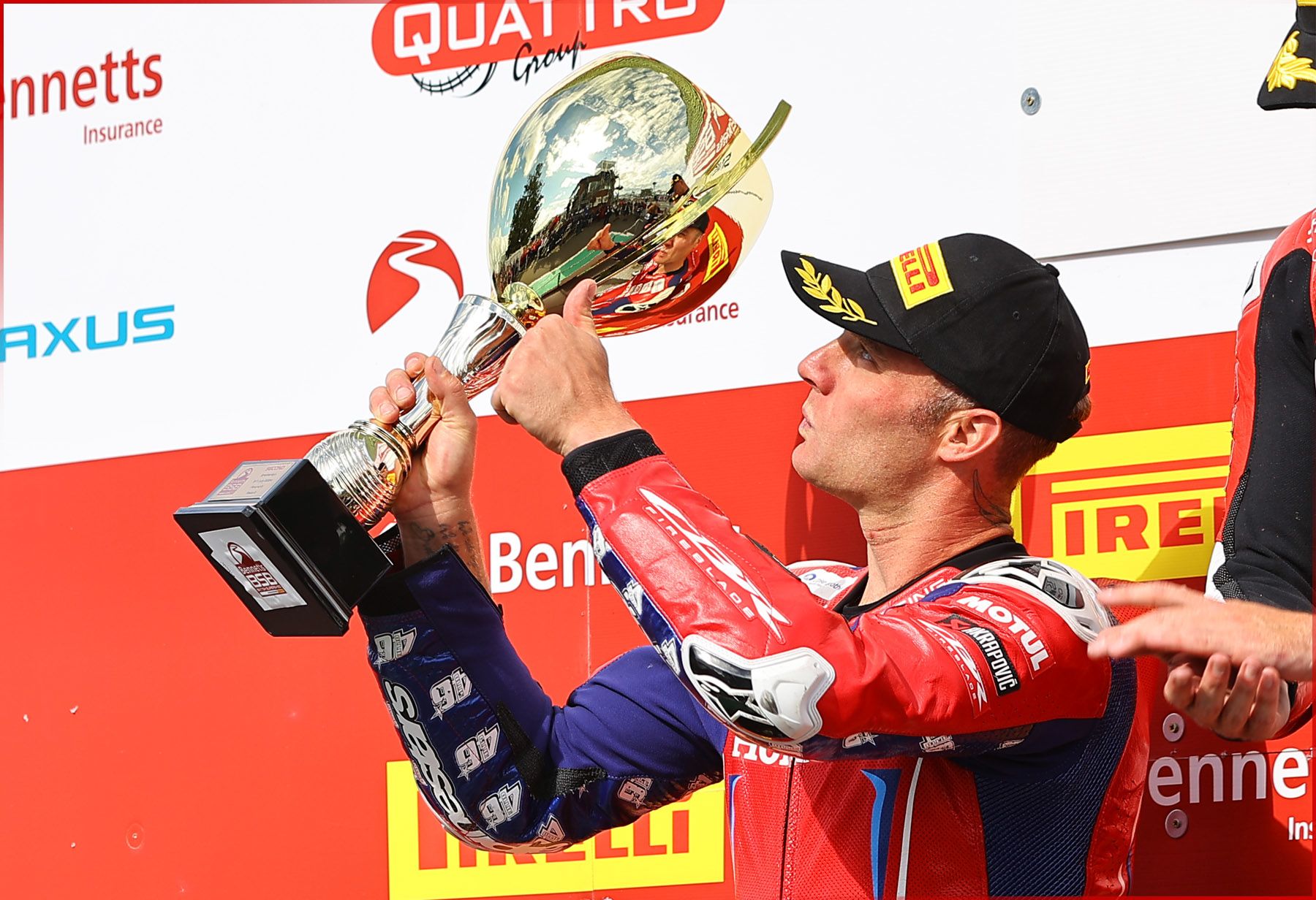 We got our first pole of the year and we've come away with two wins in dry and wet conditions. The team have been faultless. The Honda CBR600RR has been amazing at this Knockhill Circuit. We changed our strategy a little bit from what I normally do here on a 600 and it really paid off to ride a little bit more like the guys at the front are riding to make life hard for them like they make life hard for me and it really paid off. I didn't think the strategy would work on the on the 600 in line four but it has worked really well, so credit to the team for giving me this set up.