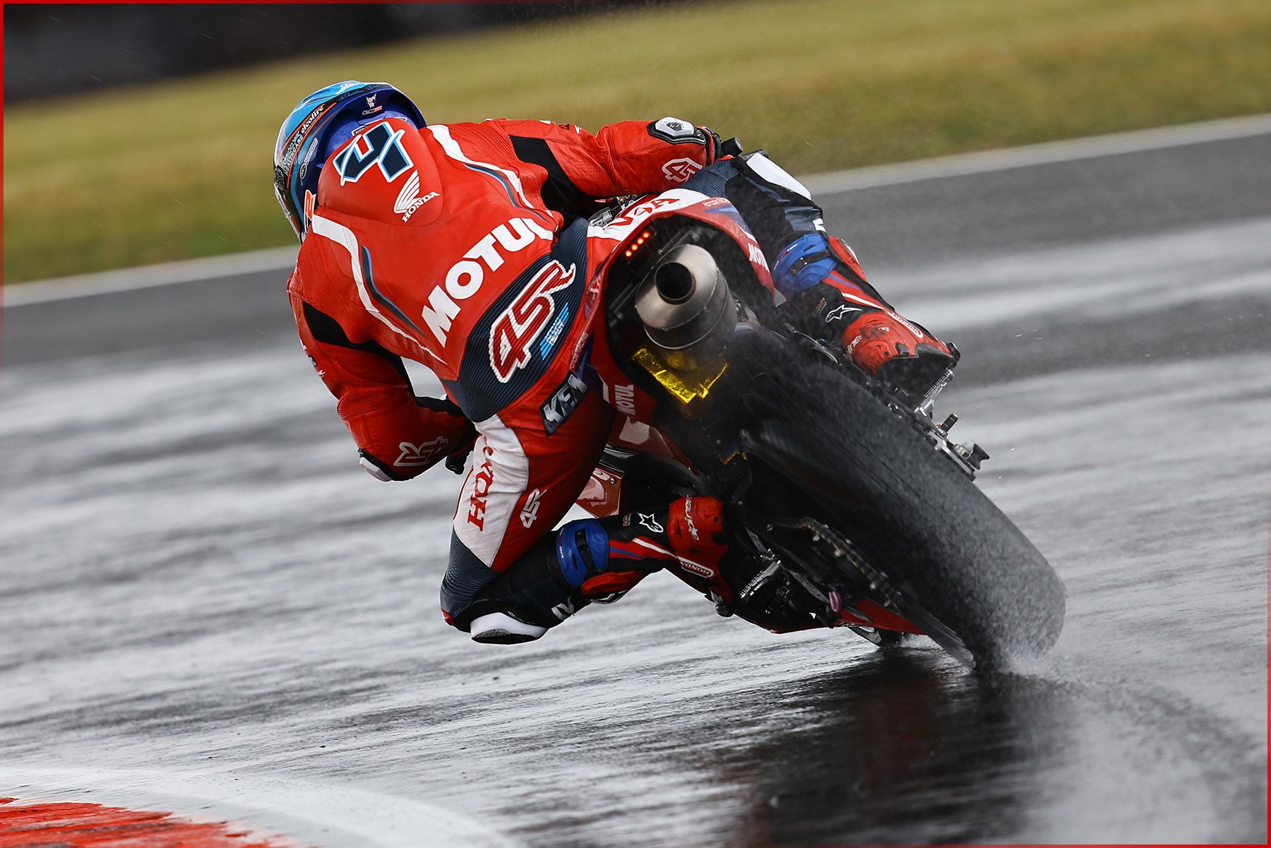 Track activity throughout the day was heavily disrupted by rain showers of varying intensities, making it challenging for all four of Honda’s riders to navigate both the stop-start nature of the day and indeed the slippery circuit conditions.