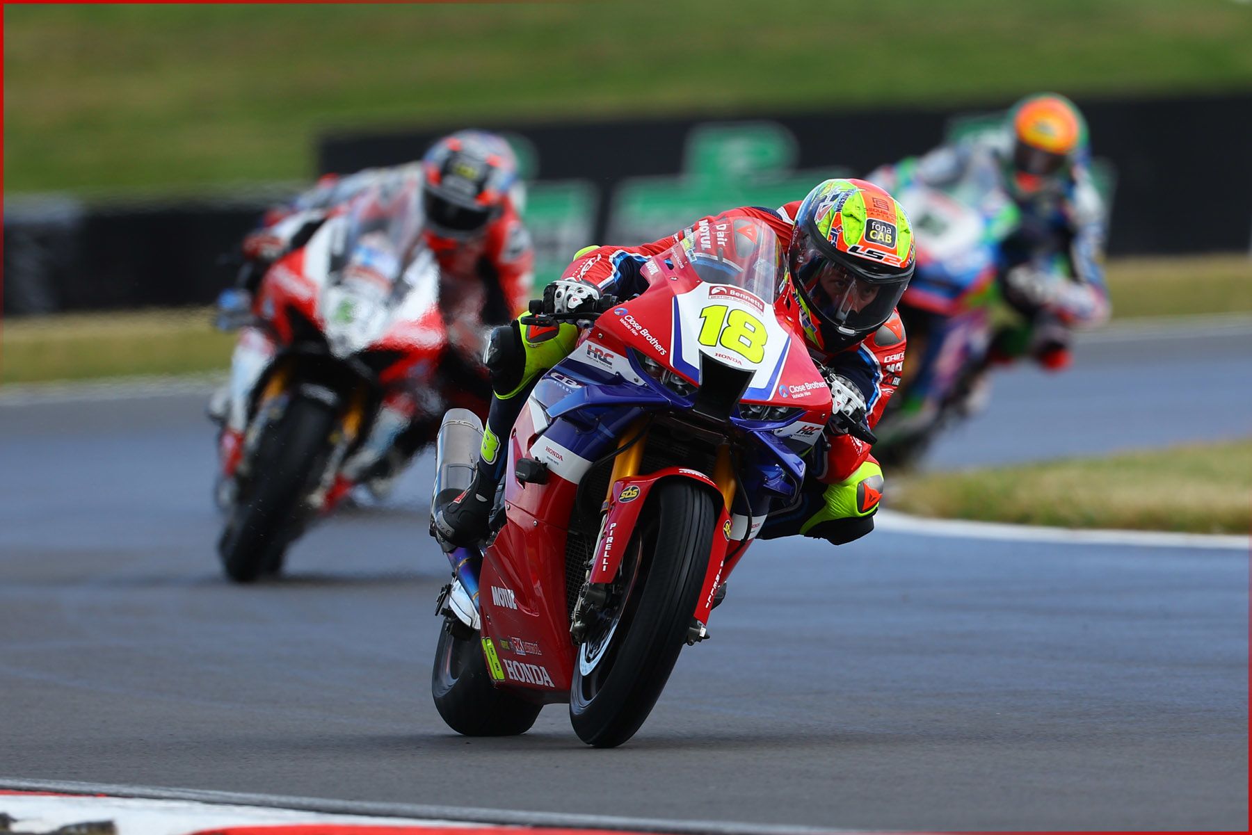 In wet and windy conditions that belied an early July scheduling in the calendar, Honda Racing UK rounded out a Saturday of mixed fortunes as Andrew Irwin secured a seventh and Dean Harrison equalled his season-best result in eleventh. But it was heartbreak for both Tommy Bridewell and Jack Kennedy as they crashed out of their respective races.