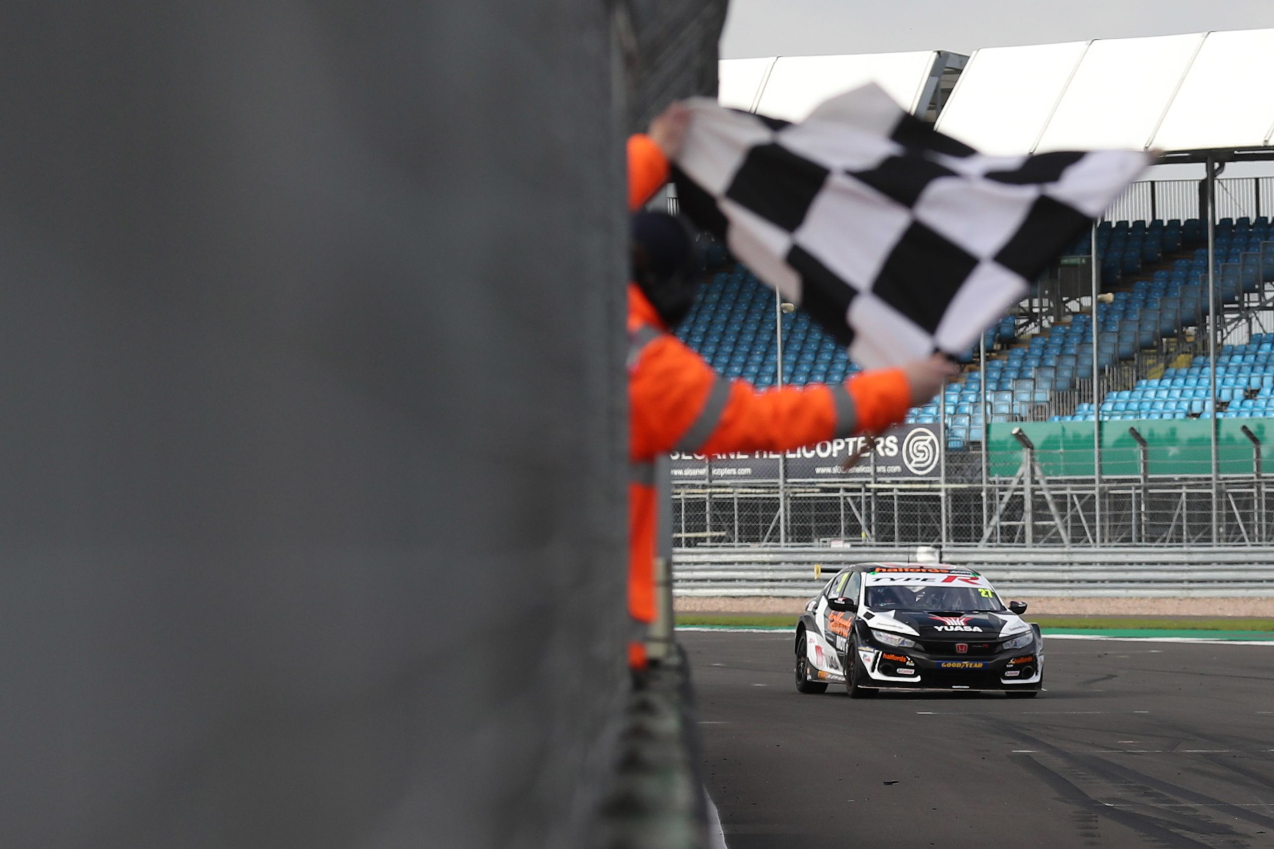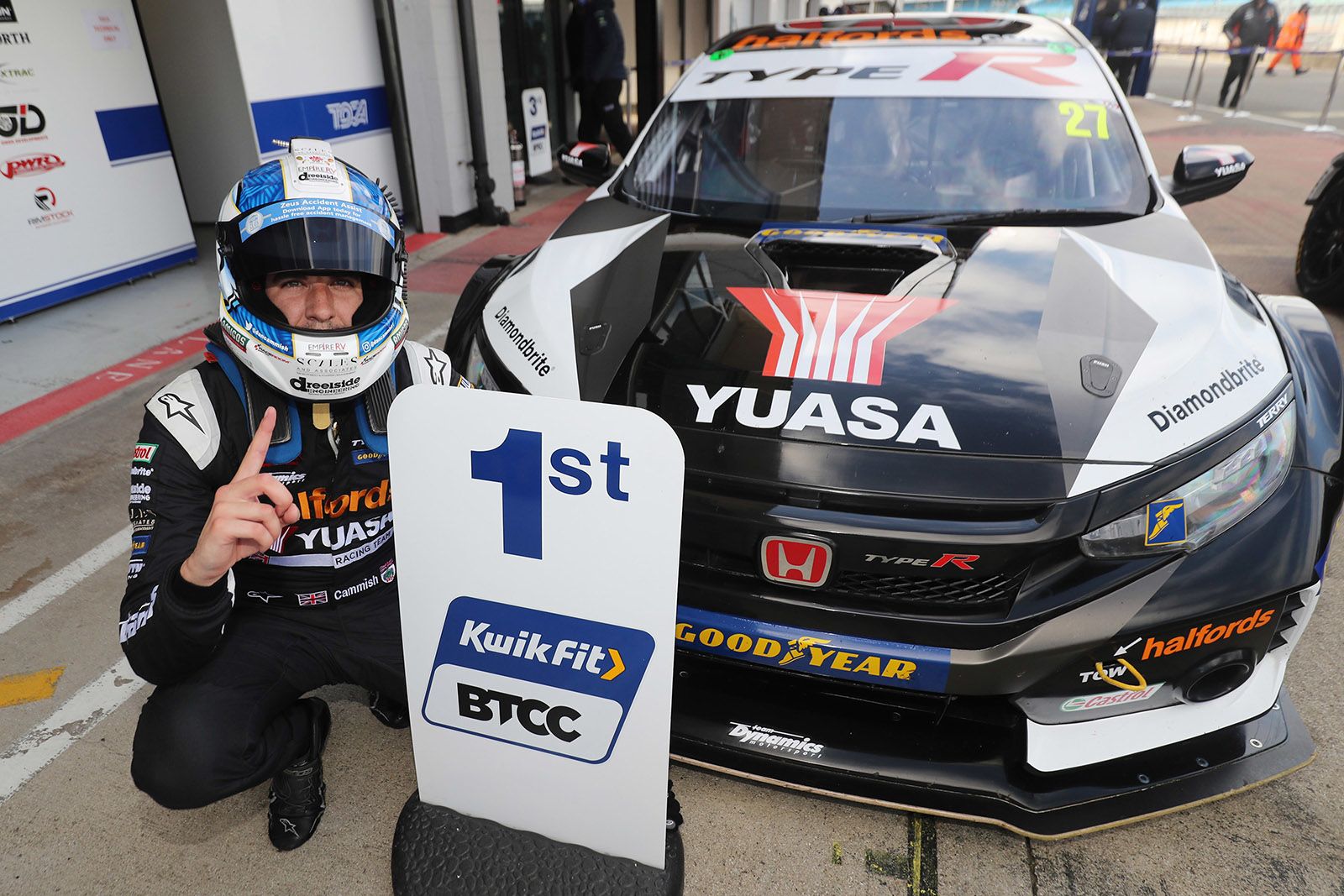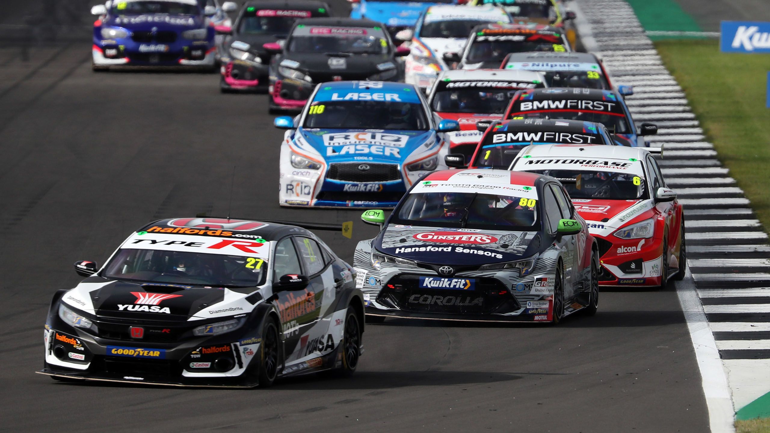 The Halfords Yuasa Racing team had high hopes for qualifying after their two cars topped the times in final practice, and Dan Cammish delivered in style. Ignoring spots of rain he took his Honda Civic Type R to a second successive pole position and by the largest margin of the season, his 103mph lap smashing the Silverstone qualifying record. Matt Neal's recent form continued too as he secured sixth grid spot, less than three tenths behind his team-mate.