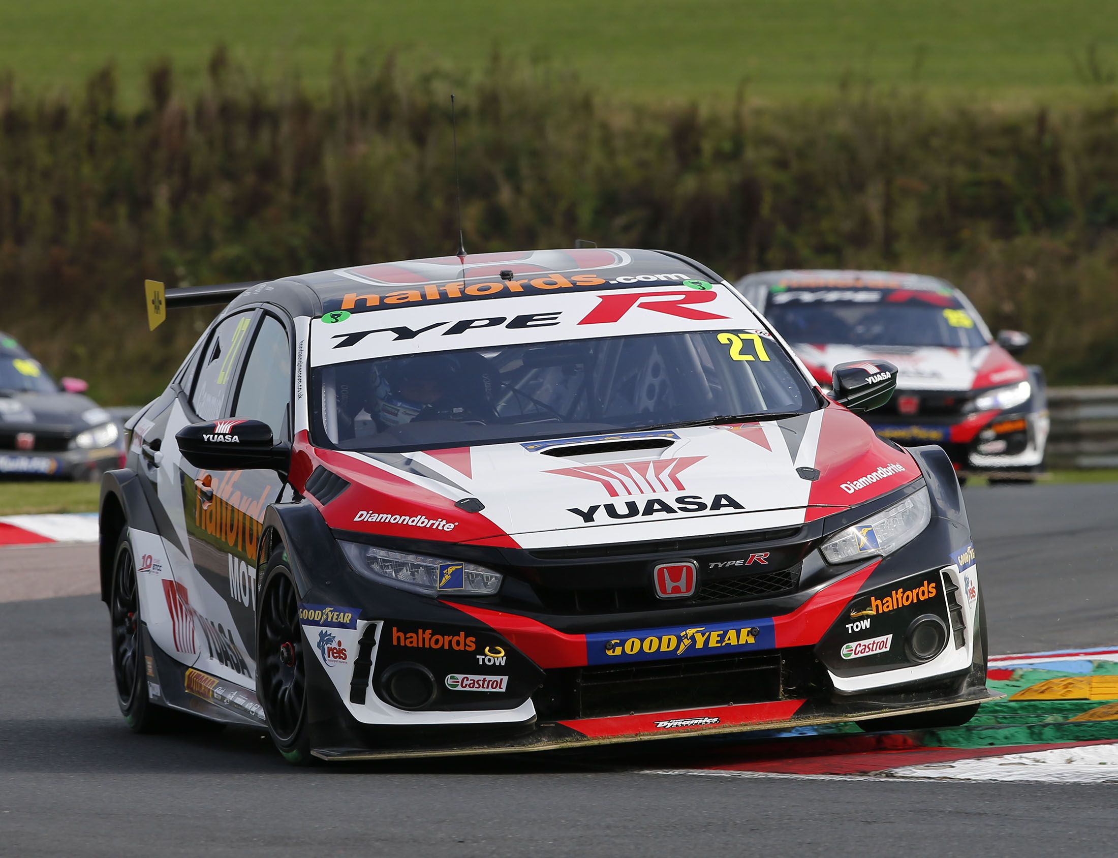 With the two Honda Civic Type R race cars wearing a one-off livery celebrating battery supplier Yuasa's 10th season with the team, Dan Cammish made a statement of intent by topping the times in both practice sessions and then taking pole position with a 112mph lap. Matt Neal produced his best qualifying performance of the season to line up third, less than two tenths of a second off the fastest time.