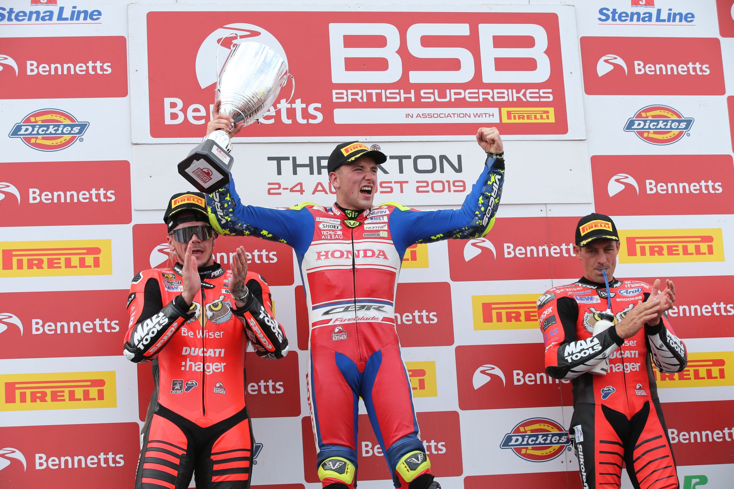 The BSB fans were treated to an action packed race as the leading group traded places for the podium spots. Irwin made his move and jumped into the lead on lap 18, where he was able to defend his position with the Fireblade, crossing the line 0.223 seconds ahead of a chasing Scott Redding, to claim his first-ever BSB podium and race win.
