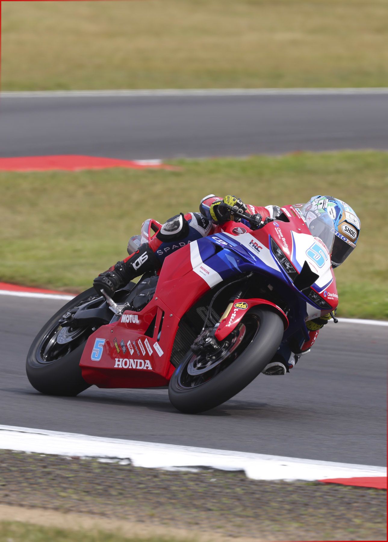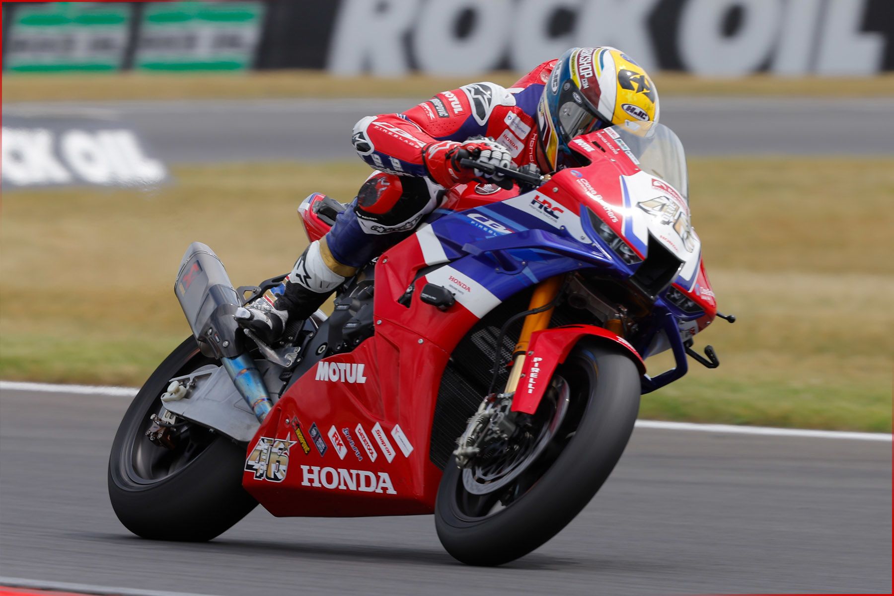 Super weekend. The team has made humongous inroads with the bike. Our rear grip was really phenomenal, probably the best I’ve ever had on the Honda, but Snetterton’s got two long straights. The start/finish is uphill and we had a headwind today, while the back straight is massively long and we’re missing straight line speed. I think that in the speed traps we were 8-9 mph down on our competition. I can only do what I’m doing when I’m losing that much in those areas. It’s hard to make it back up elsewhere, so I’m really proud of how I rode, and how the team worked, because we knew where we were going to suffer. On our own we were fine, but in a battle it was obvious where we were lacking and we had to make it up everywhere else. I was able to make back my time in the corner and driving off the corner, so I’m really happy with how that’s gone. We’ve got a test coming up and I’m sure we will see some improvements coming from that, I’m just impatient and I want it last weekend!