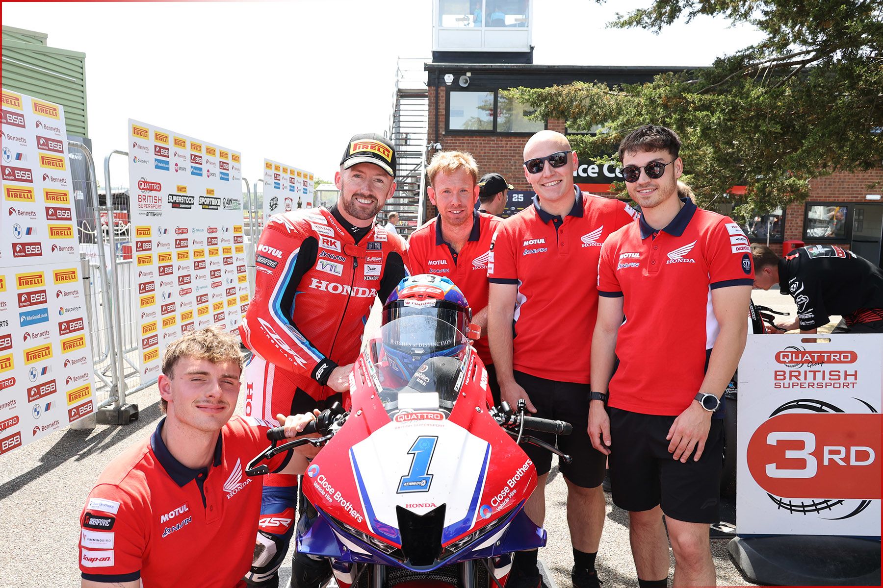 Having scored the team’s first BSB podium of the season so far, taking his Honda Fireblade to third place on Saturday, Tommy Bridewell repeated the feat on Sunday afternoon after a thrilling tussle which ended in an exquisite slipstreaming pass at the line.