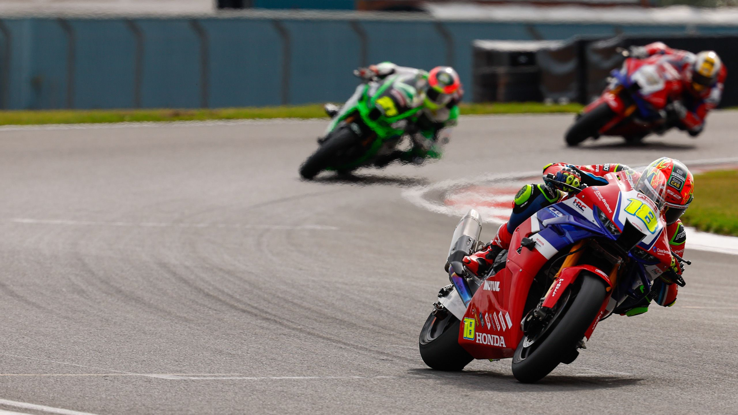 Starting from the second and fourth rows of the grid respectively, the two Honda riders got away cleanly at the start. With Irwin getting straight into the podium battle, ultimately finishing in fifth place. Bridewell’s early gains were consolidated before he then worked his way through the field to seventh place before the race was stopped early for a red flag incident.
