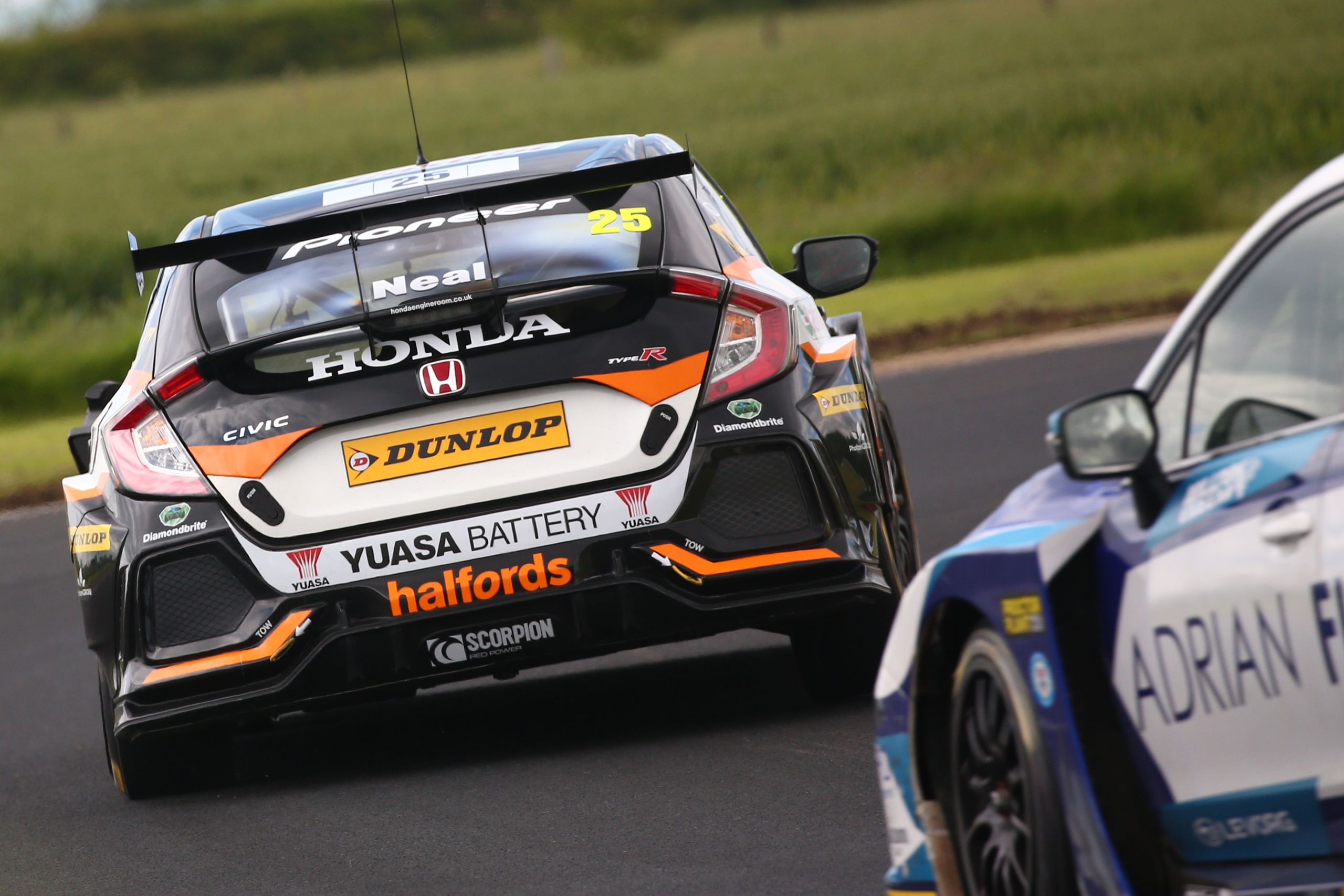 A further rain shower made conditions tricky for race one but the two Honda drivers consolidated their positions. Cammish overcame the fast-starting Ford of Ollie Jackson and then found himself in a rear-wheel-drive sandwich, challenging the leading BMWs while also holding off the Subaru of Ashley Sutton. Sixth place at the flag was the reward while team-mate Neal made a bold pass of Tom Ingram's Toyota to put his Honda into the top ten at the flag.