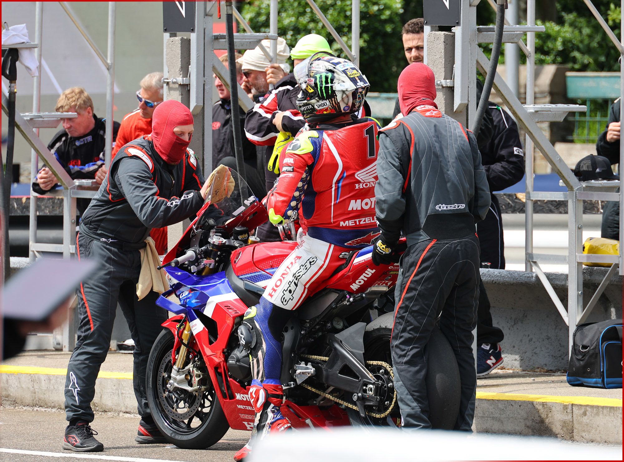 In an amended schedule due to the inclement weather conditions during race week, Honda Racing UK finally took to the Mountain Course to compete in the RL360 Superstock TT Race. In which both Dean Harrison and John McGuinness set personal best stock lap times on their way to fourth and seventh place finishes respectively. Nathan Harrison meanwhile was flying on his Fireblade before retiring from the race on the final lap with a technical problem.