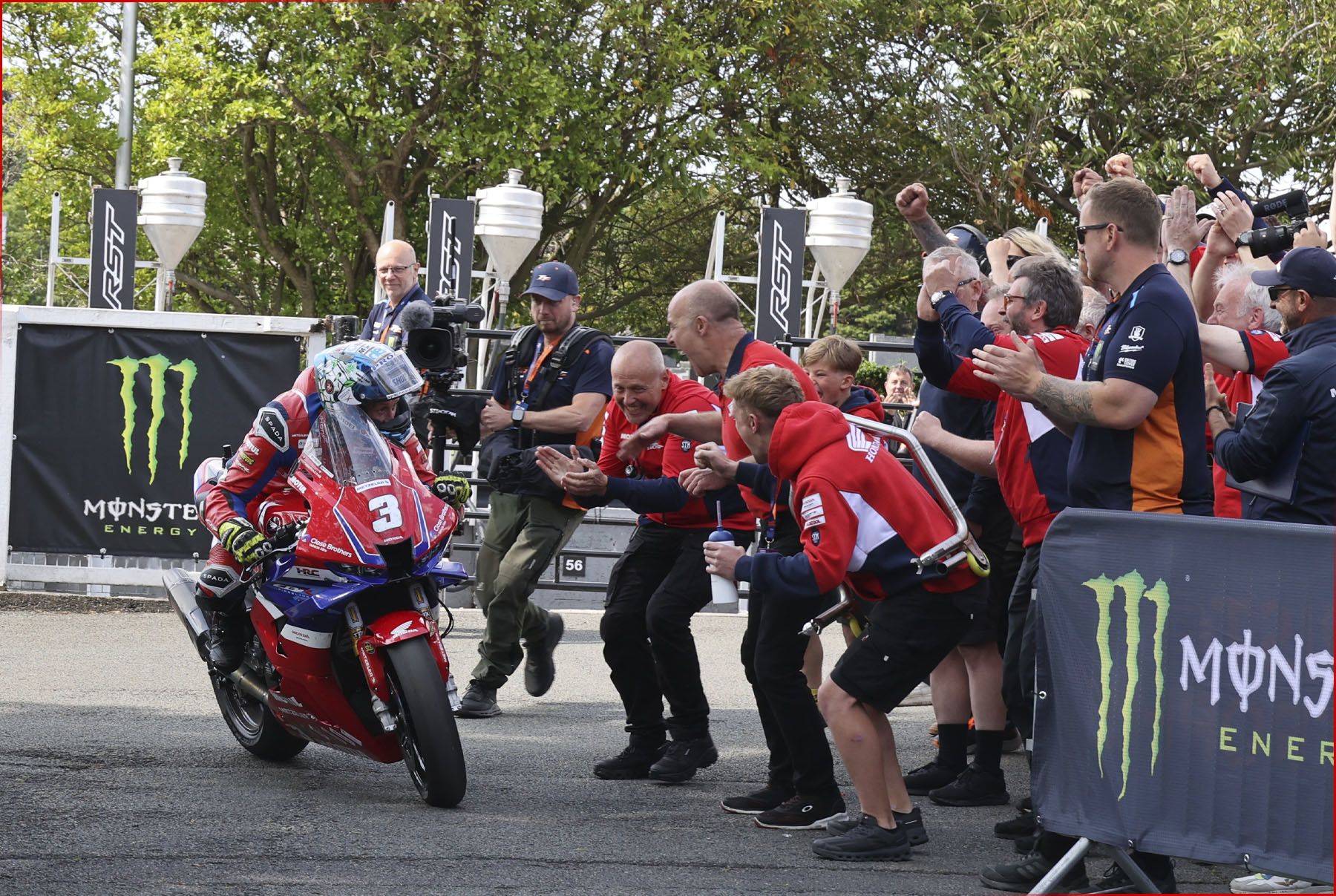 “Words can’t describe it, I’m absolutely over the moon to get my two wins in the Superstock class. I went for it really hard at the start, so when I looked at my pit boards I saw P1, P2 then P1 over the mountain again. Then I just saw P1 was +13 seconds coming out of Glen Helen after the pit stop on Lap 2, so I carried on as hard as I could and thought ‘right, I’ll carry on this lap to try and manage that’. If I could keep that lead the same there was no way somebody could make 13-14 seconds on me in the lap, so I just kept my head down and when I saw that P1 was +20 seconds I just read my boards from there, really. I just managed it, knocked it down by a few rpm on the last lap, and brought it home. Honestly, we’re constantly trying to adapt the bike, everyone’s in the same boat, being such a difficult place, trying to set your bike up round here is a little bit of a compromise and we’ve had a little bit of stability issues that we’ve near enough caught now, which means that I can ride the bike the way that I want to ride the bike. Massive thanks to the whole team, all at Honda and everyone have put a brilliant bike together and it’s great to see the Honda Fireblade in P1. We have been in talks about changing a few things to the bike for the Senior TT tomorrow, we’ll have six laps and that’s very physical around this place so we’ll have a sit down tonight and come up with a plan!”