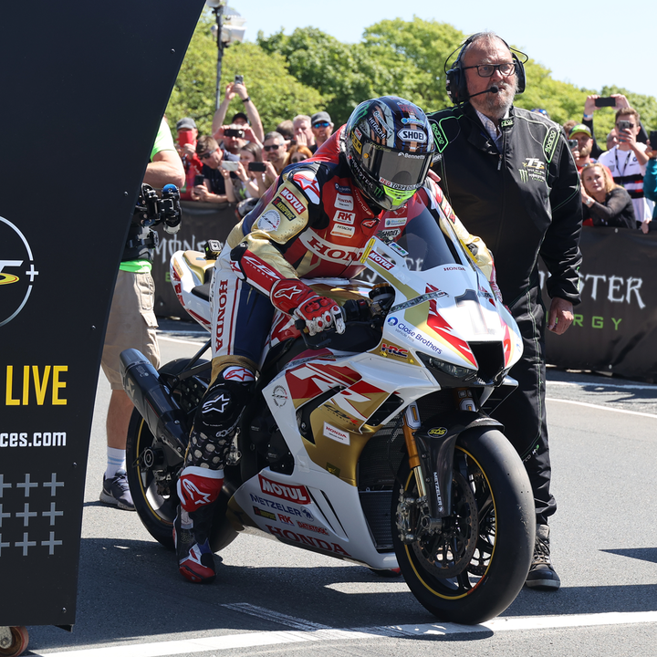 This year’s Isle of Man TT races saw John McGuinness, MBE hit a truly amazing milestone of 100 TT race starts, and Honda Racing paid homage to the TT legend with a one-off special celebratory livery. The vibrant gold graphics were intertwined with images from every one of John’s 100 races, and John even had a matching set of leathers!