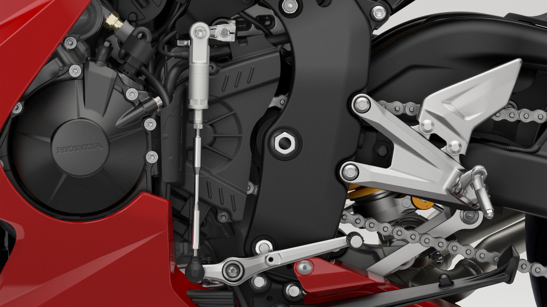 Engine Mounted Unit Pro-Link featured on some of the Honda supersport models is a unique way of mounting the rear suspension directly onto the engine. This improves rear tyre ground contact feeling and the external forces transferred to the steering through the frame are suppressed. This in turn improves high speed stability.