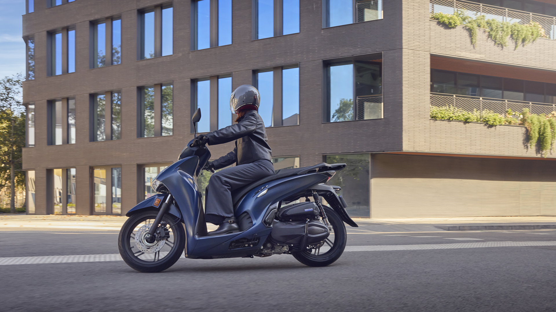 The idling stop function works in conjunction with the integrated starter-generator unit and switches off the engine when the rider stops to reduce emissions. The starter-generator then restarts the engine seamlessly as soon as the rider opens the throttle to pull away.