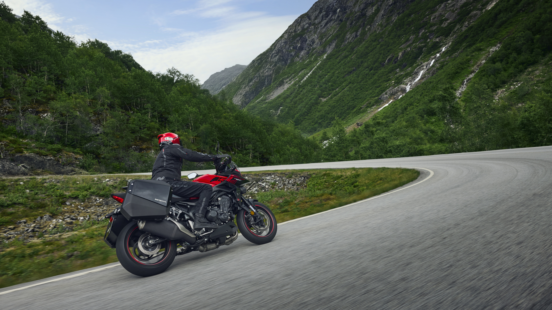 Selectable riding modes enable the rider to select pre-set and customisable user modes. These modes alter the levels of power delivery, HSTC and engine braking to suit the rider preference or riding conditions.