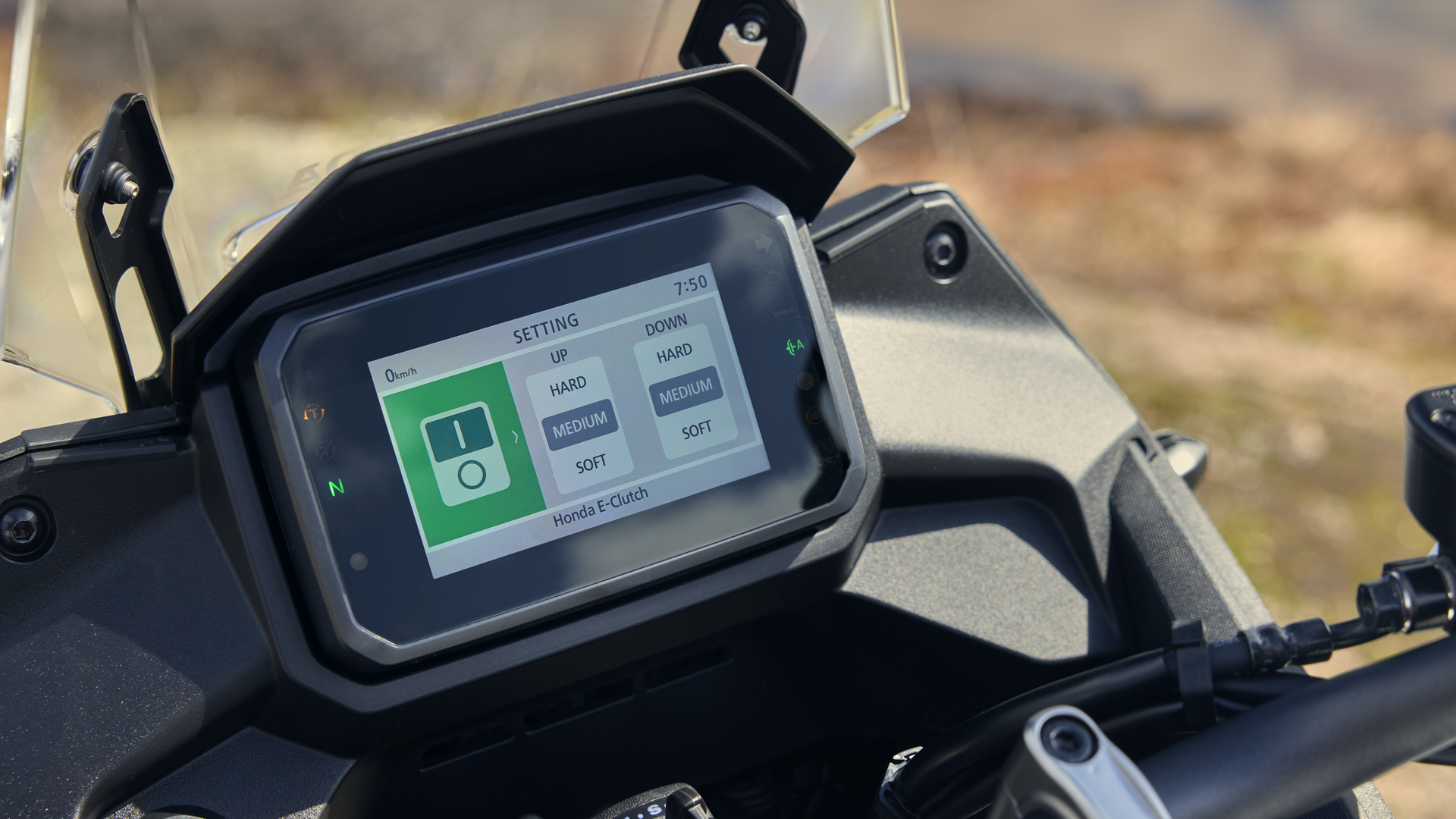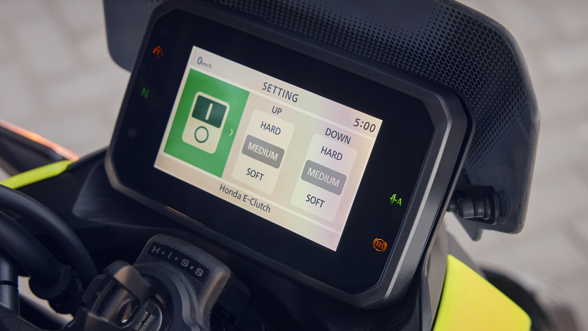 The Honda E-Clutch system automatically engages and disengages the clutch and frees the rider from using the clutch lever which enables them to concentrate on riding, braking and turning. The system also emulates the operation of a quick shifter as clutch lever operation is not required during shifting. The system helps to reduce rider fatigue and eliminates stalling as the clutch lever operation is not required when starting and stopping. Additionally the rider can use manual clutch lever operation at any time.