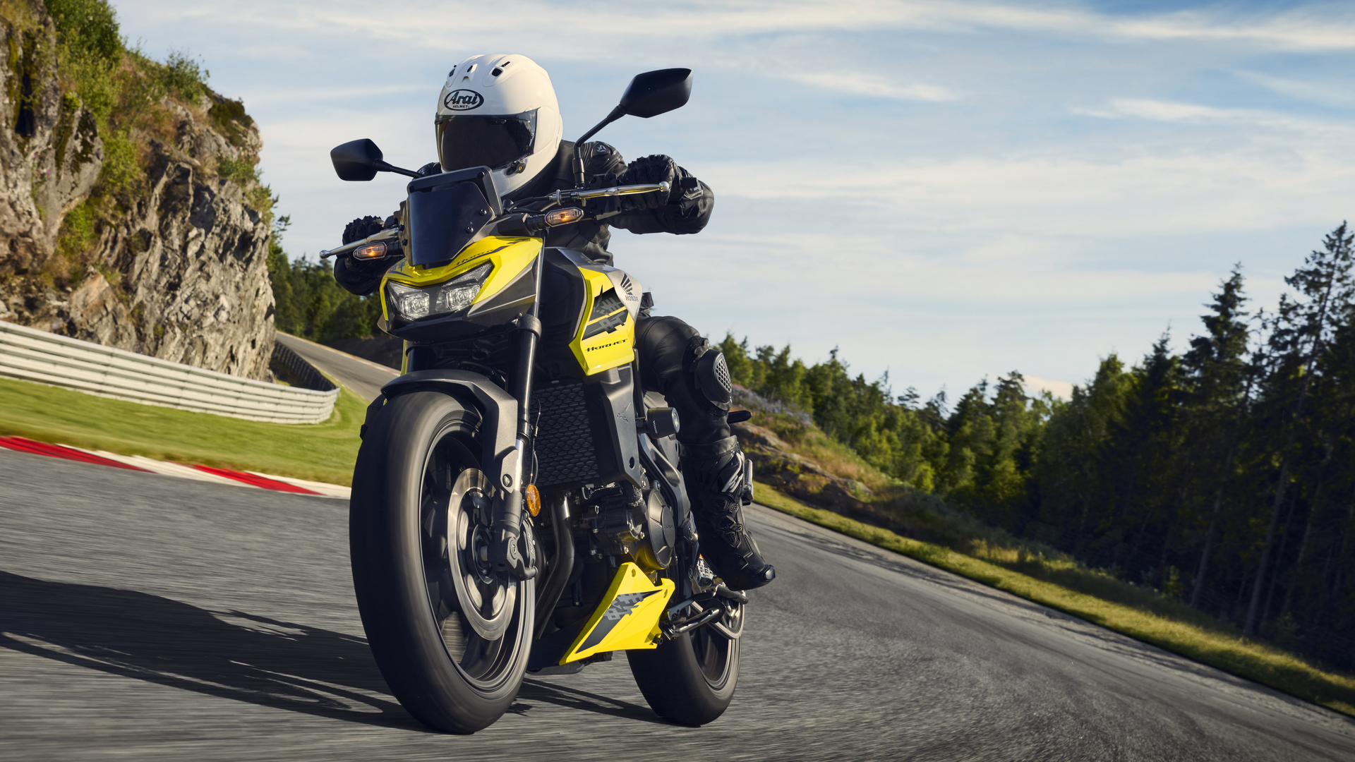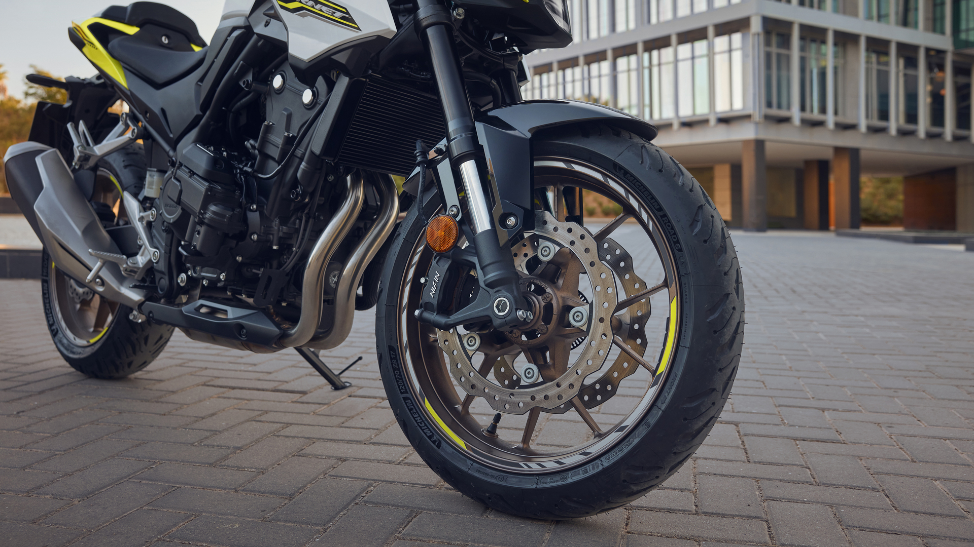 Hill Start Assist (HSA) holds the brakes on momentarily when stopping to enable seamless pulling away and prevent the motorcycle from rolling when stopped on an incline.