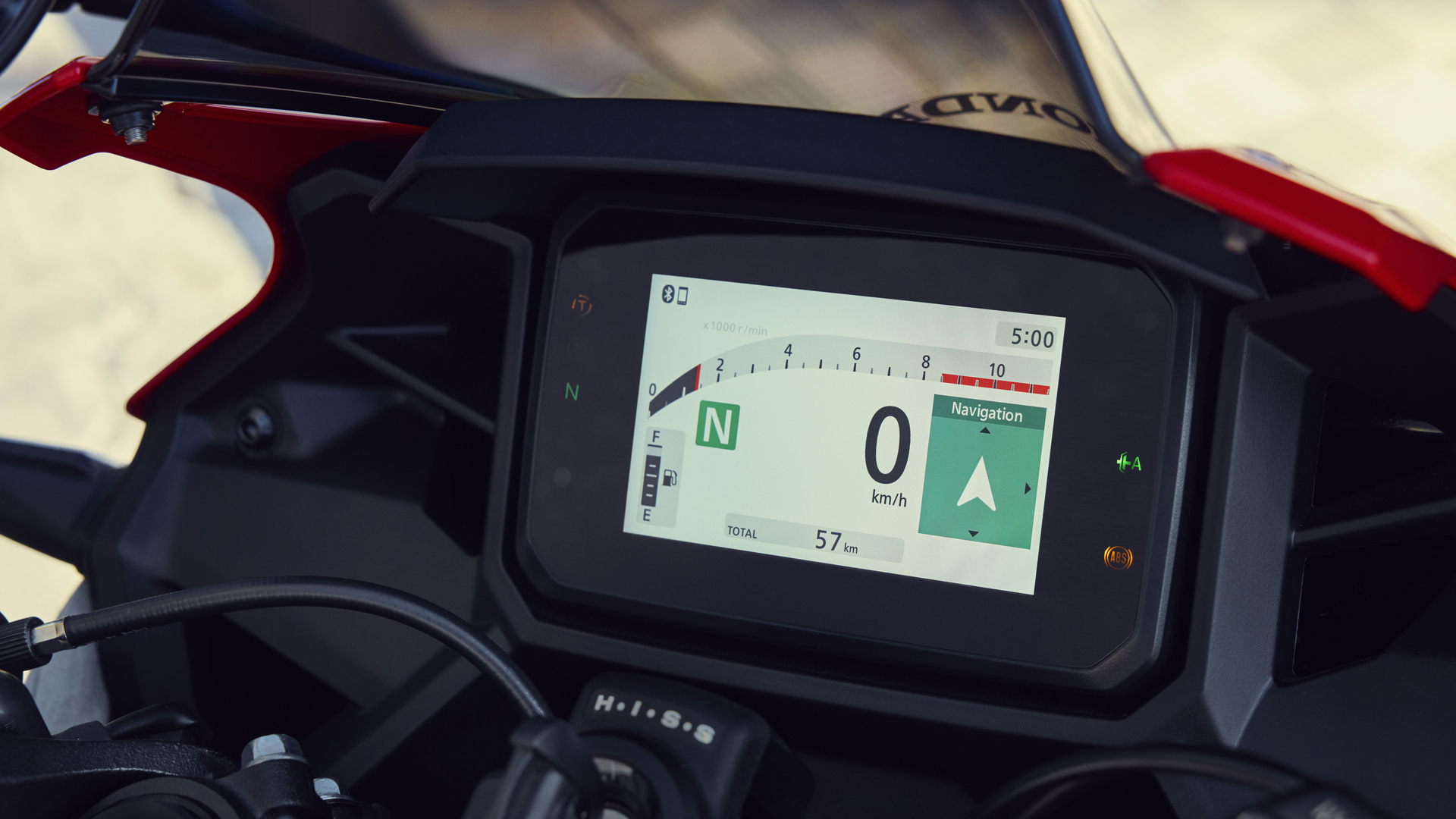 Thin Film Transistor (TFT) technology is now integrated into the meter on many of the Honda motorcycle and scooter range. This type of colour display provides clear and concise user information and integrates touch screen technology on some models.