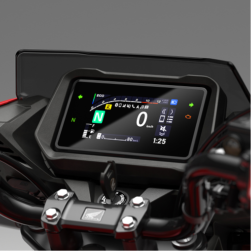 Refined from the wheels up, the CB125F benefits from updates to the front and rear cowl as well as new LED headlights all-round, providing a more modern aesthetic. A new 4.2-inch TFT screen has been added, featuring Bluetooth® connectivity, so you can utilise Honda RoadSync, keeping you up to date and connected whilst on the move.